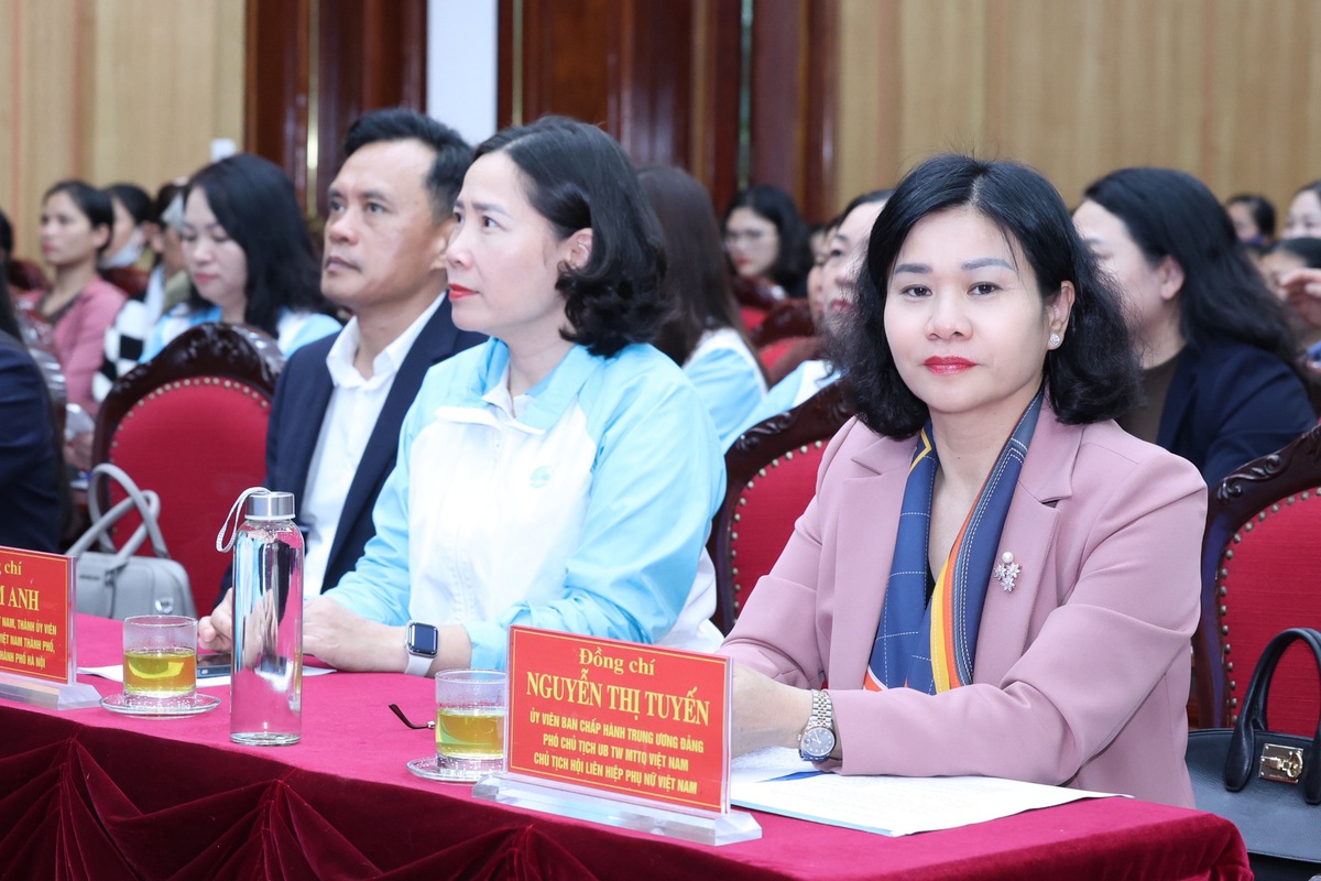 Ủy viên TƯ Đảng, Phó Chủ tịch UBTƯ MTTQ Việt Nam, Chủ tịch Hội LHPN Việt Nam Nguyễn Thị Tuyến (bên phải) và Chủ tịch Hội LHPN thành phố Hà Nội Lê Kim Anh (giữa) tham dự chương trình