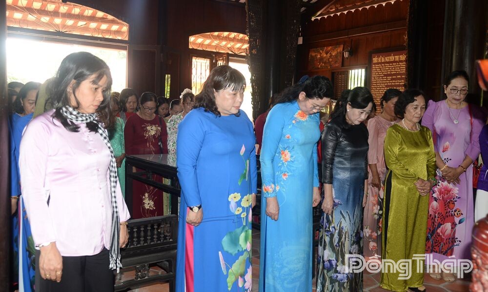 Tiếp đó, Đoàn đến dâng hoa, dâng hương tại Nhà thờ đồng chí Nguyễn Thị Thập, nguyên Chủ tịch Hội LHPN Việt Nam. Trước anh linh đồng chí, các đại biểu thắp hương bày tỏ lòng biết ơn sâu sắc đối với người lãnh đạo tiền bối đã có nhiều đóng góp to lớn cho sự nghiệp giải phóng phụ nữ và phong trào cách mạng của địa phương.