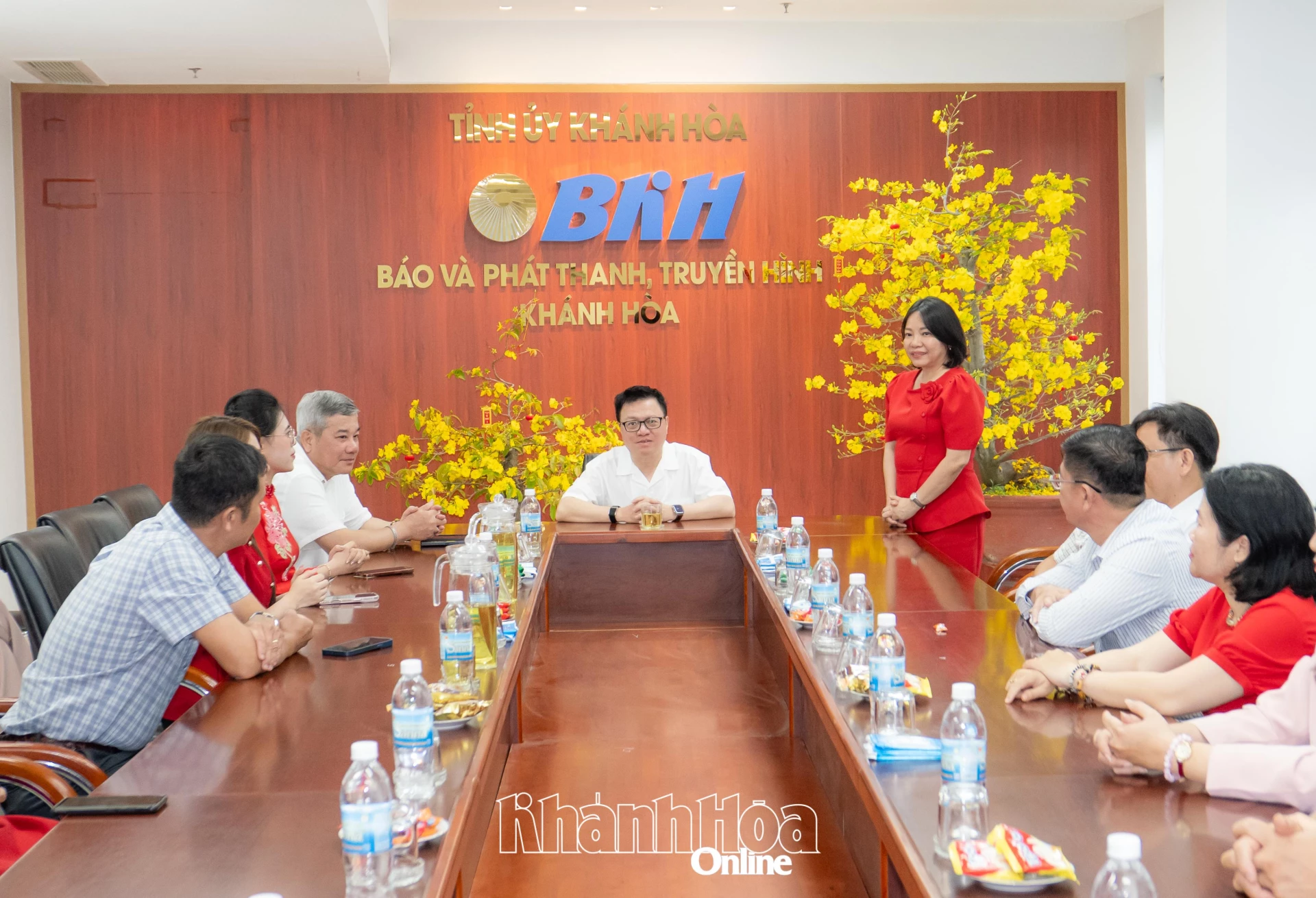 Ngày 19-2 (mùng 3 Tết), đồng chí Lê Quốc Minh - Ủy viên Trung ương Đảng, Tổng Biên tập Báo Nhân dân, Phó Trưởng ban Tuyên giáo và Dân vận Trung ương, Chủ tịch Hội Nhà báo Việt Nam đến thăm, chúc Tết Báo và Phát thanh, Truyền hình Khánh Hòa. Cùng đi có ông Đỗ Chí Thanh - Phó Tổng Giám đốc Tập đoàn Công nghiệp - Năng lượng Quốc gia Việt Nam.