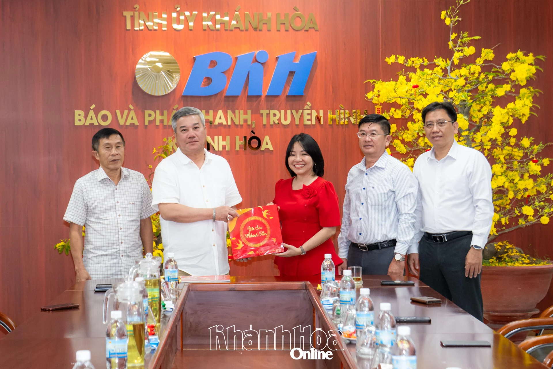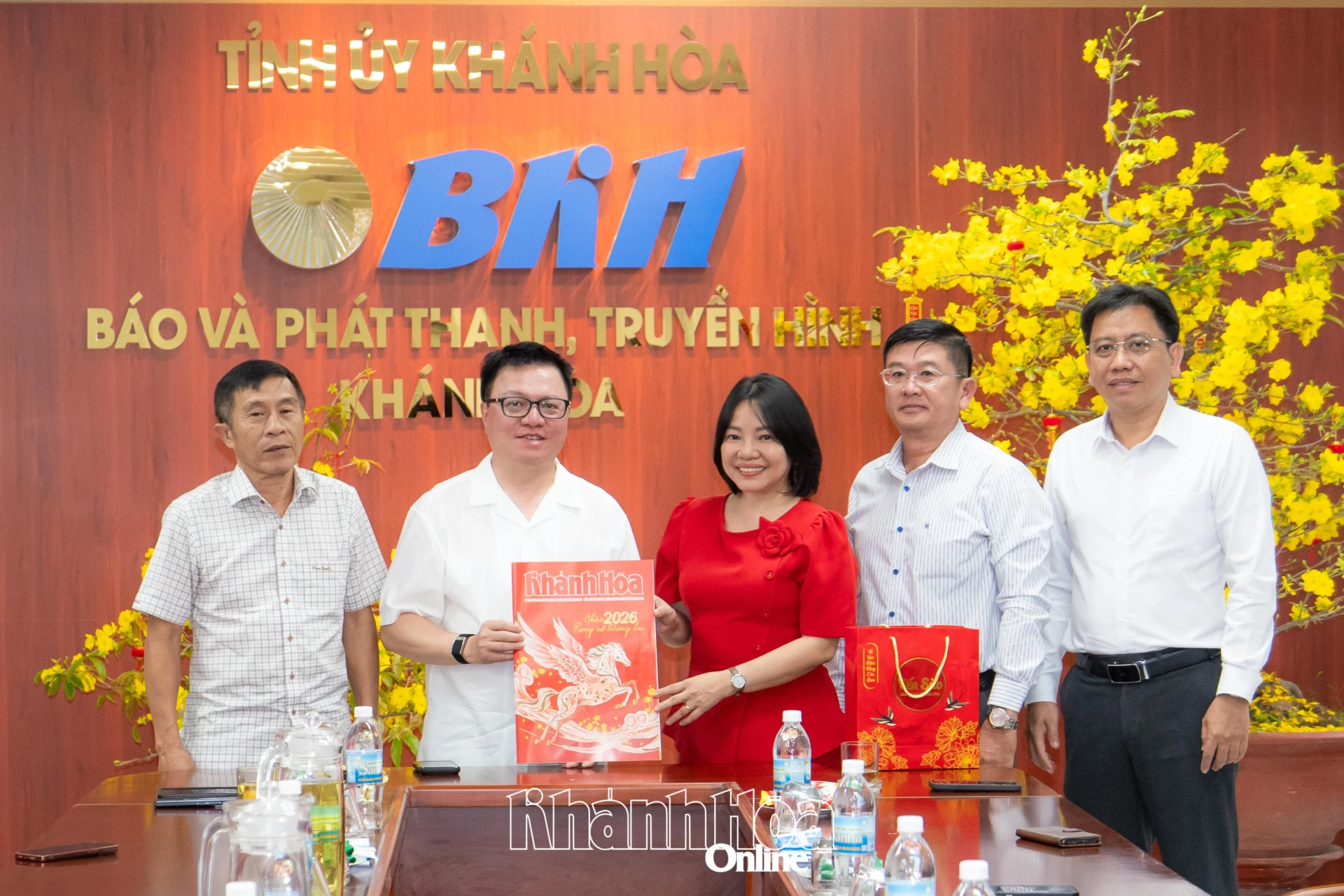 Ban Giám đốc Báo và Phát thanh, Truyền hình Khánh Hòa tặng ấn phẩm Báo Khánh Hòa xuân cho ông Đỗ Chí Thanh.
