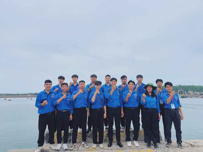Trịnh Đức Lương cùng các bạn sinh viên tại chương trình “Thanh niên, sinh viên với biển, đảo Tổ quốc” ở Đặc khu Bạch Long Vĩ. Ảnh: NTCC.