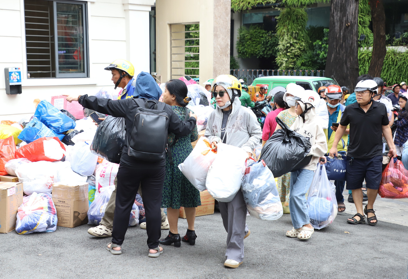 Người dân trên địa bàn TPHCM mang nhu yếu phẩm đến gửi cơ quan MTTQ TPHCM để chuyển đến bà con vùng thiên tai.