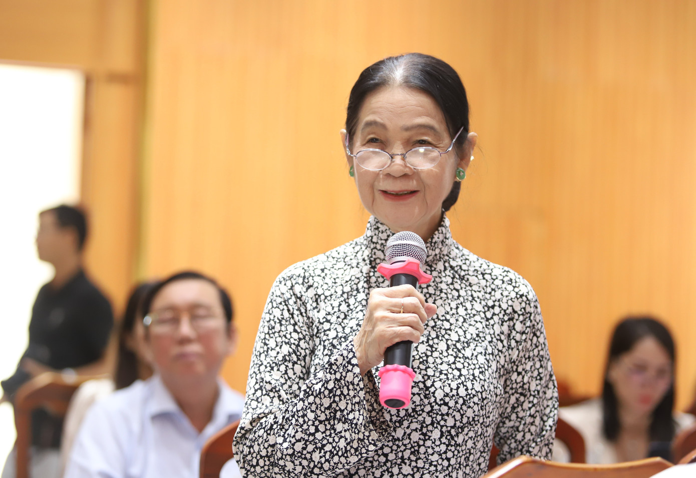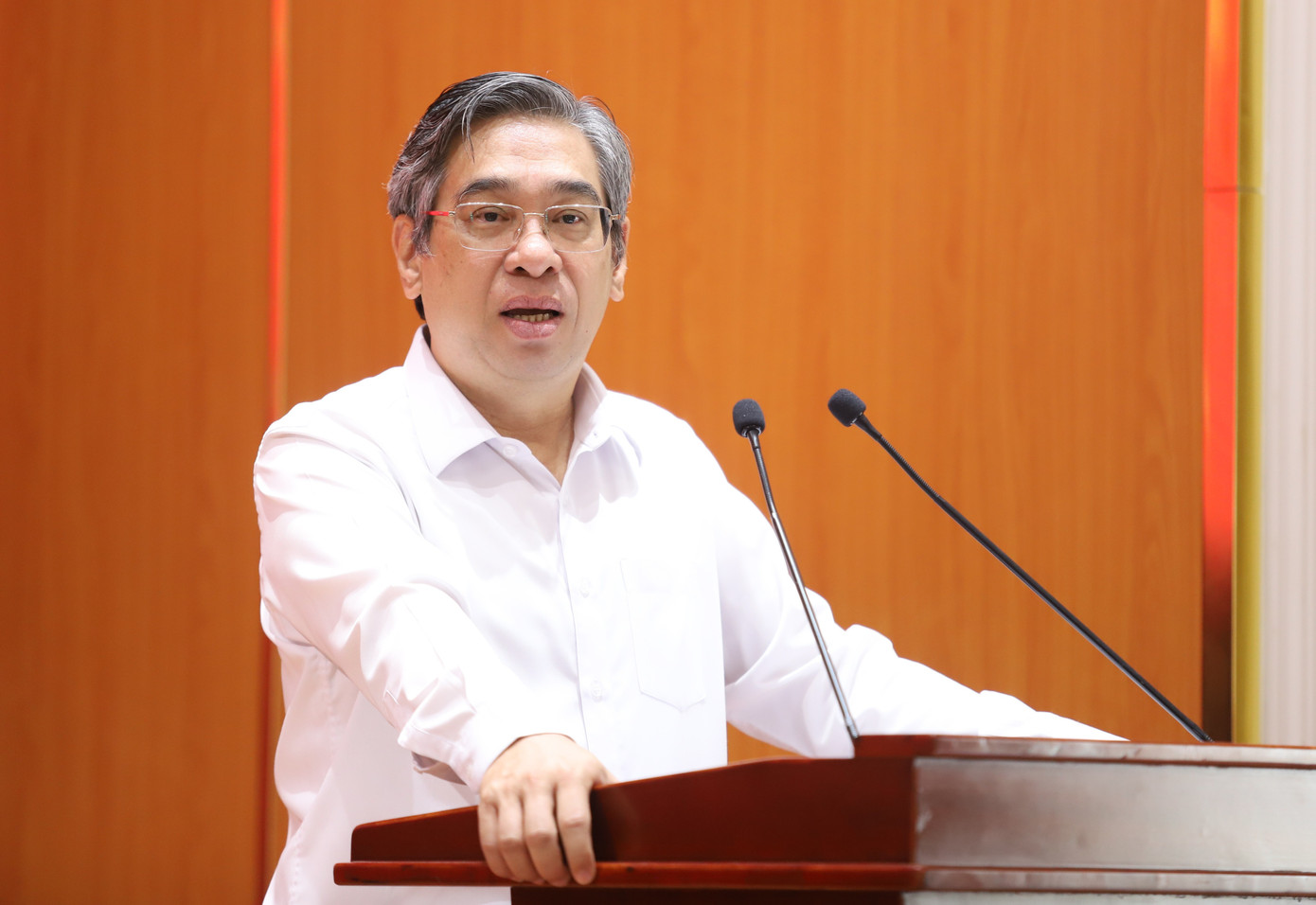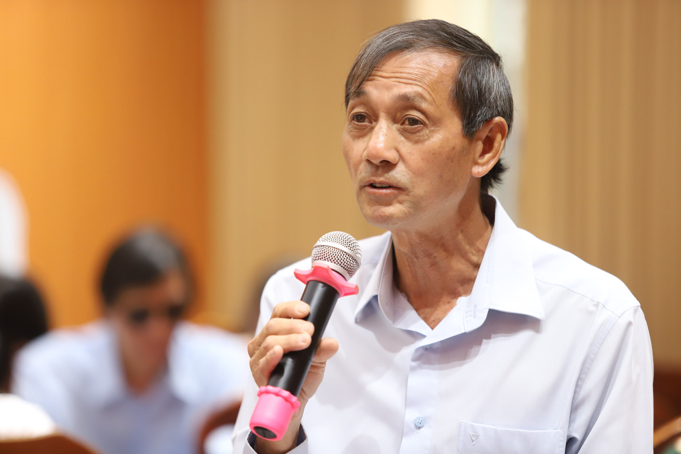Phó Bí thư Thành ủy, Chủ tịch Ủy ban MTTQ Việt Nam TPHCM Nguyễn Phước Lộc trao đổi tại hội nghị. Ảnh: Ngô Tùng