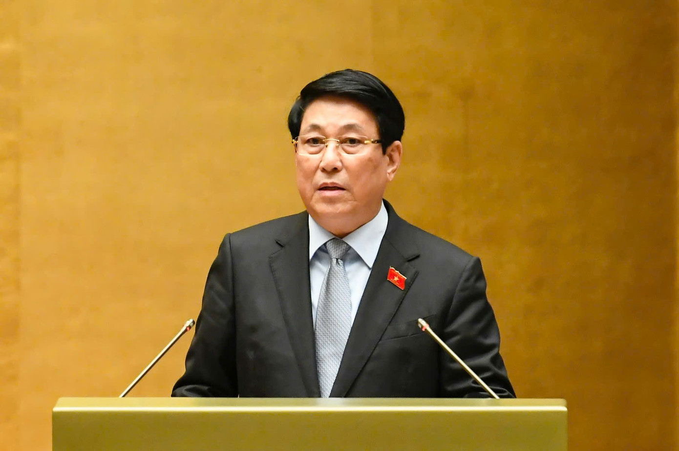 Chủ tịch nước Lương Cường báo cáo tại kỳ họp Quốc hội. Ảnh: Như Ý