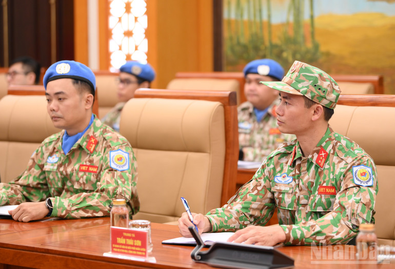 Đồng chí nhấn mạnh, việc cử các sĩ quan tham gia nhiệm vụ quốc tế tiếp tục khẳng định uy tín, trách nhiệm và vai trò tích cực của Việt Nam đối với cộng đồng quốc tế. Đồng chí yêu cầu các sĩ quan quán triệt, thực hiện nghiêm quan điểm, đường lối đối ngoại của Đảng, Nhà nước, Quân đội; chấp hành nghiêm quy định của Liên hợp quốc, pháp luật nước sở tại, bảo đảm an ninh, an toàn; đoàn kết, tương thân tương ái, thường xuyên trao đổi kinh nghiệm trong công tác, giúp đỡ nhau hoàn thành nhiệm vụ; có hành vi ứng xử chuẩn mực, thể hiện bản lĩnh, năng lực chuyên môn, phát huy bản chất, truyền thống của Quân đội nhân dân Việt Nam, góp phần lan tỏa hình ảnh, nét đẹp của văn hóa, đất nước, con người Việt Nam, Quân đội nhân dân Việt Nam trên trường quốc tế.