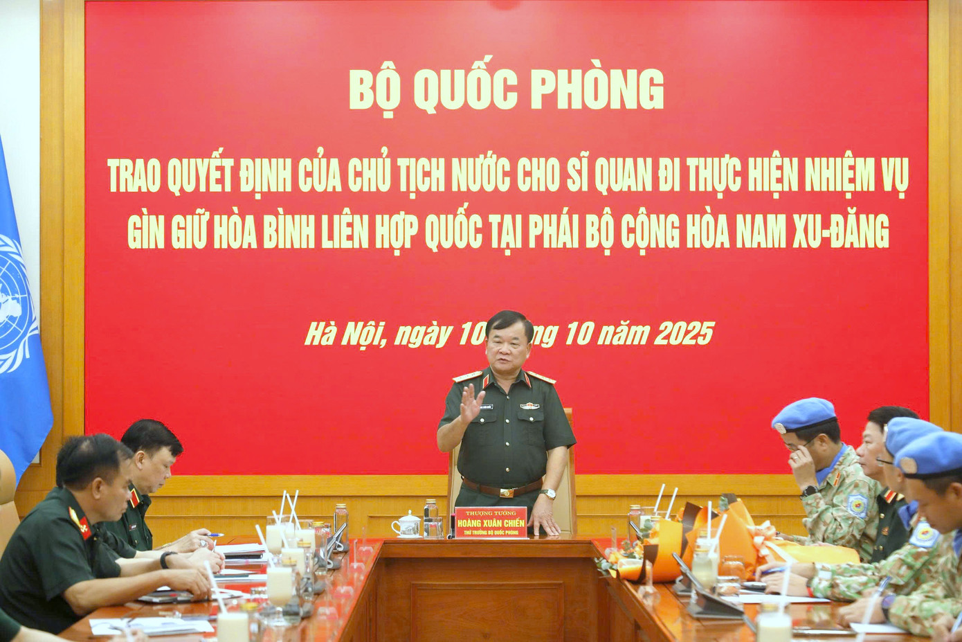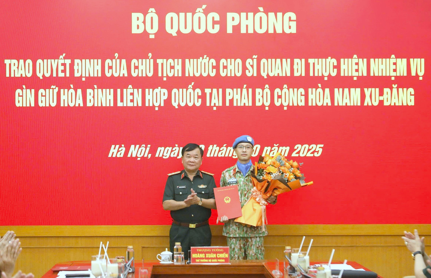 Ngày 10/10, Bộ Quốc phòng tổ chức Lễ trao quyết định của Chủ tịch nước cho sĩ quan đi thực hiện nhiệm vụ gìn giữ hòa bình Liên Hợp Quốc (GGHB LHQ) tại Phái bộ UNMISS ở Cộng hòa Nam Sudan.