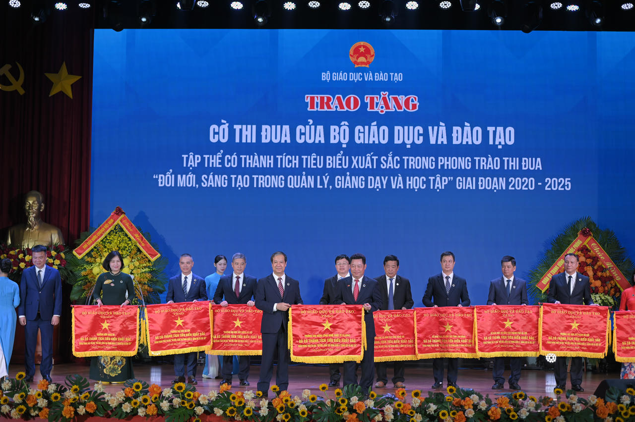 Trong khuôn khổ buổi lễ, Bộ trưởng Nguyễn Kim Sơn đã trao Cờ thi đua của Bộ GD&ĐT cho 11 tập thể xuất sắc; tặng Bằng khen cho 12 tập thể và 12 cá nhân đại diện cho 141 tập thể, 174 cá nhân có thành tích nổi bật trong phong trào thi đua giai đoạn 2020 - 2025.