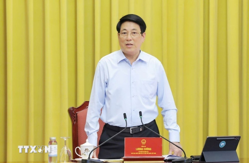 Chủ tịch nước Lương Cường phát biểu tại buổi làm việc. (Ảnh: Minh Đức/TTXVN)