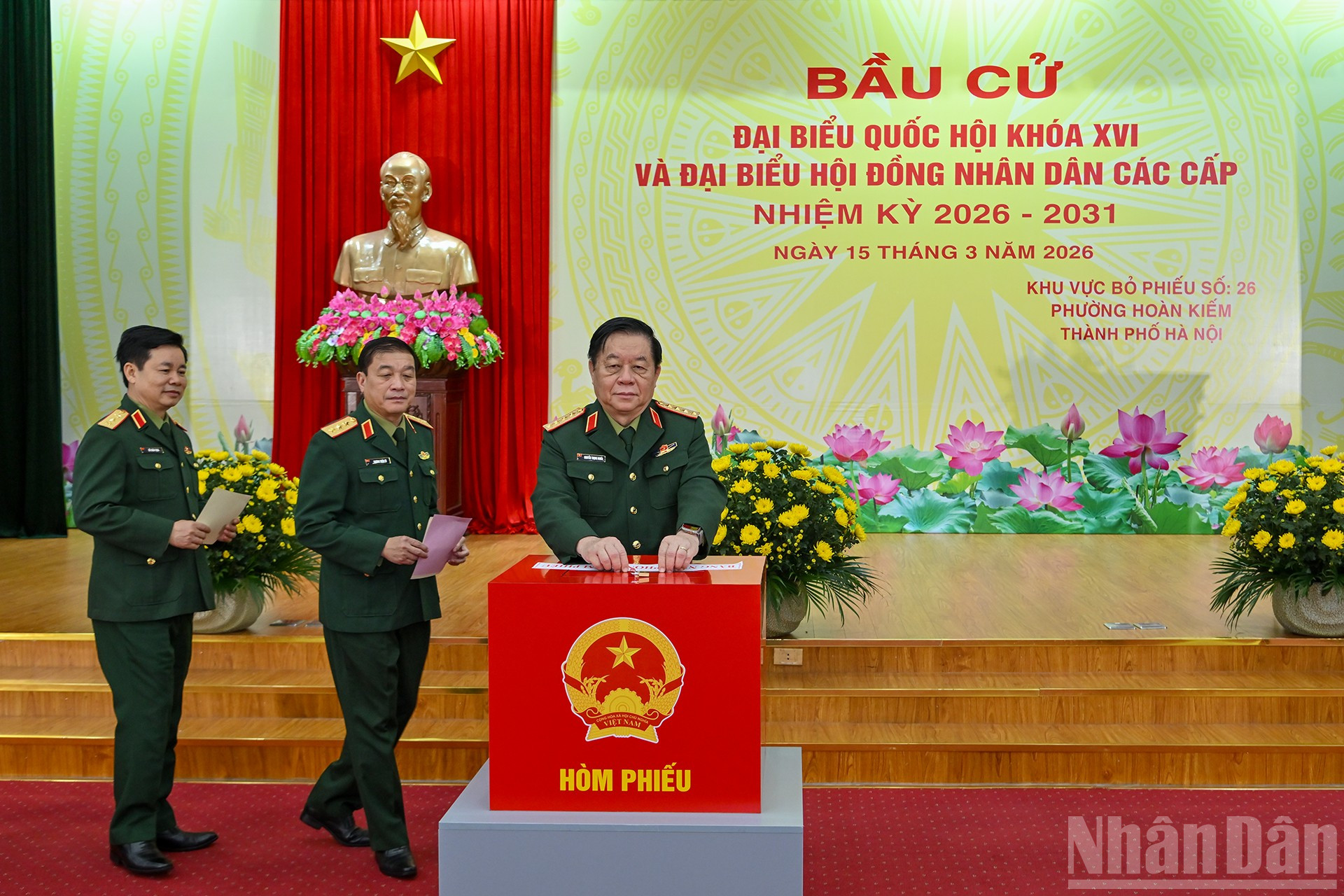 Chủ nhiệm Tổng cục Chính trị Quân đội nhân dân Việt Nam Nguyễn Trọng Nghĩa bỏ phiếu bầu cử Đại biểu Quốc hội khóa XVI và đại biểu Hội đồng nhân dân các cấp nhiệm kỳ 2026-2031.