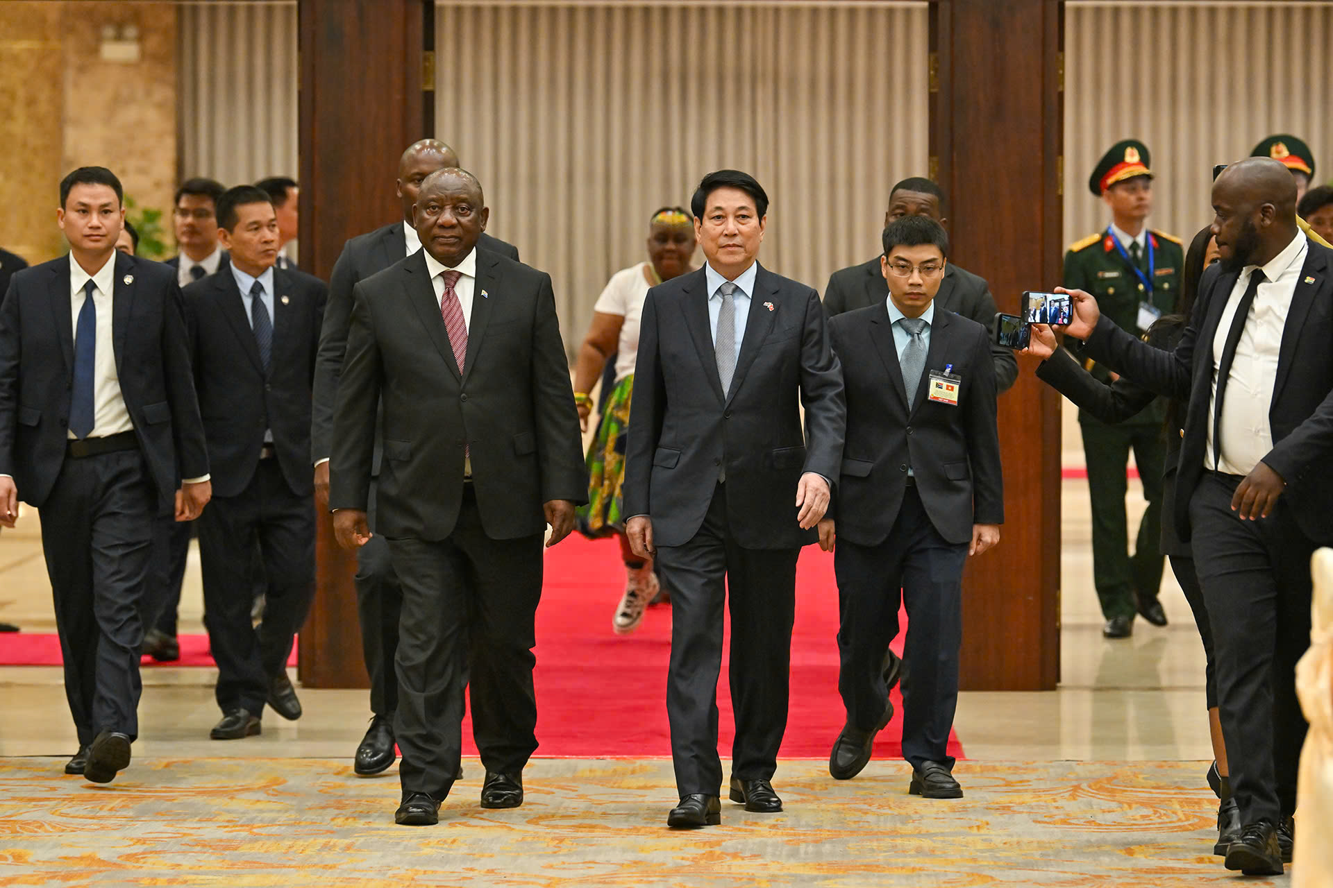 Tổng thống Matamela Cyril Ramaphosa nhấn mạnh, quan hệ Nam Phi - Việt Nam được xây dựng trên nền tảng lịch sử và tình đoàn kết trong đấu tranh giành độc lập, khi nhân dân Nam Phi từng tìm thấy nguồn cảm hứng từ tinh thần kiên định vì tự do và công lý của Việt Nam.