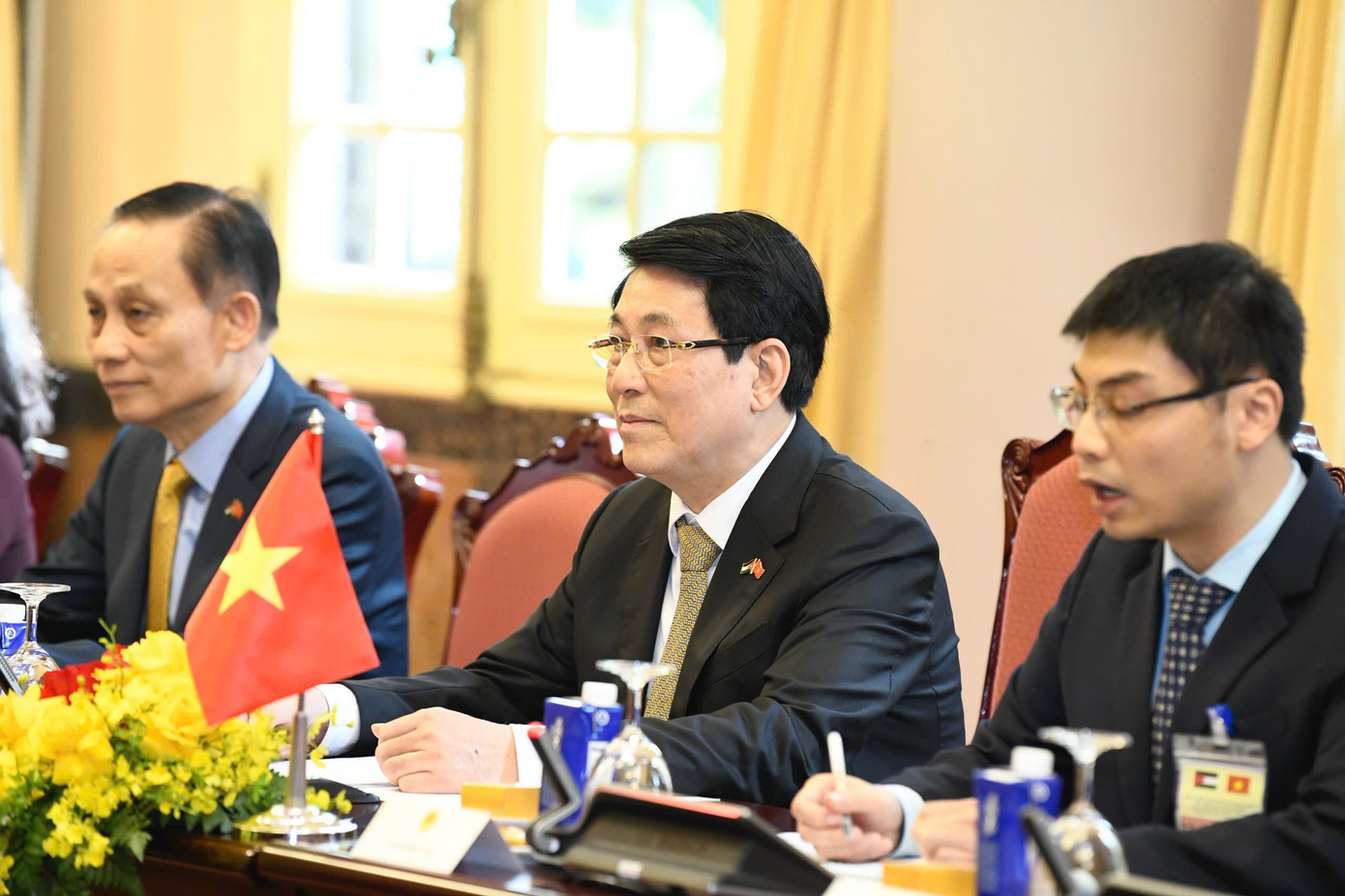 Sau lễ đón, Chủ tịch nước Lương Cường và Quốc vương Jordan có cuộc hội đàm. Ảnh: Như Ý.