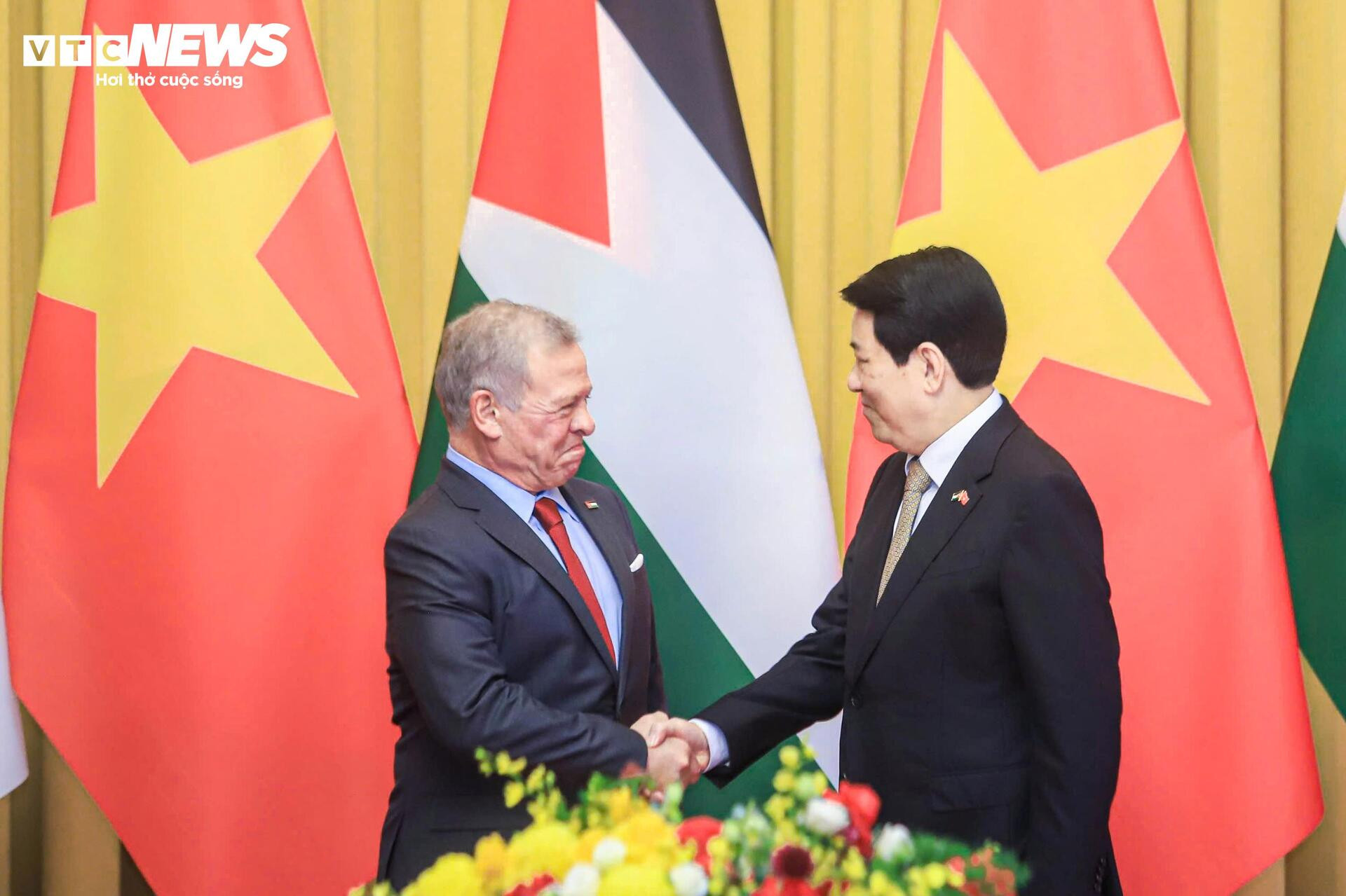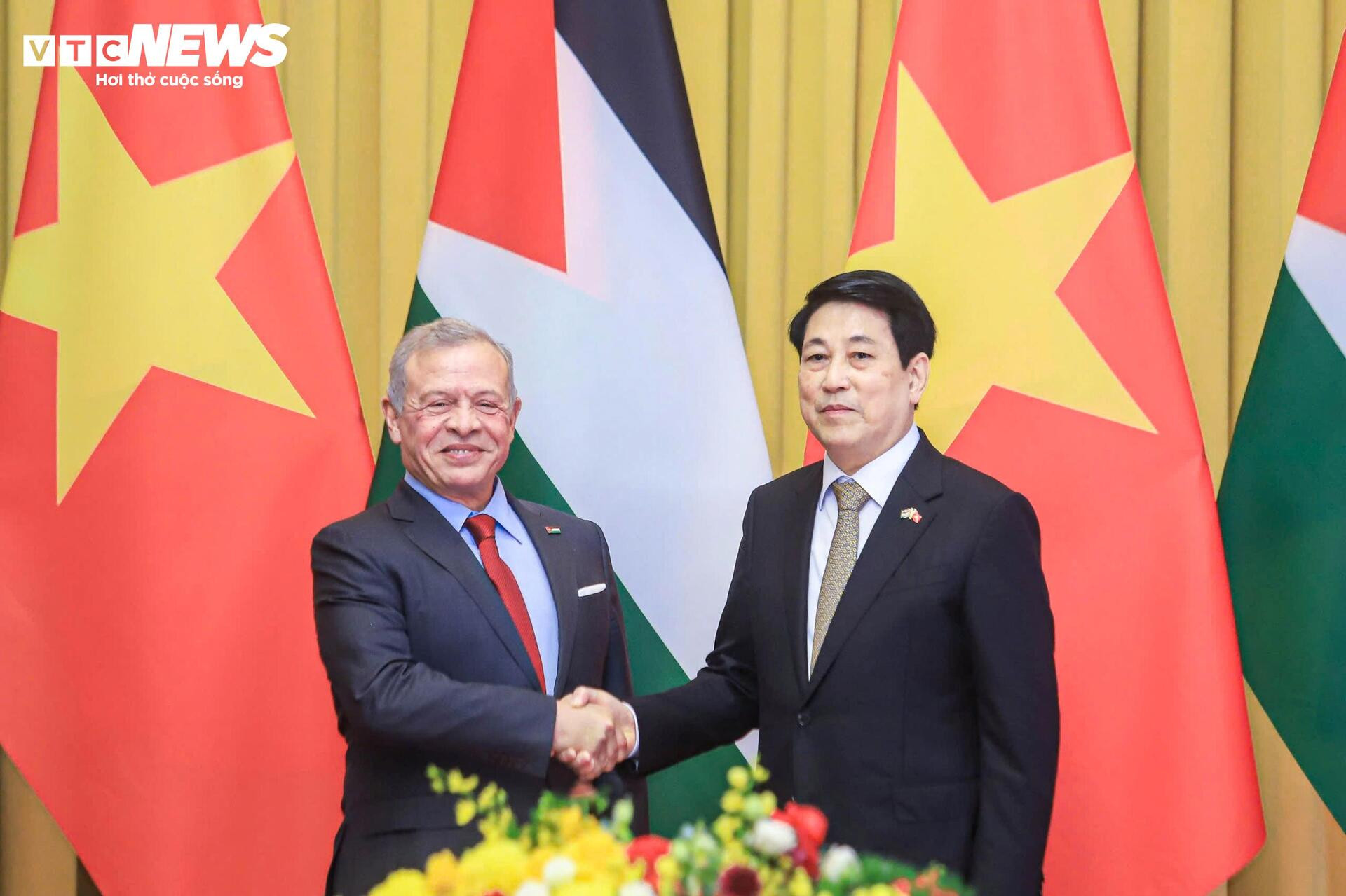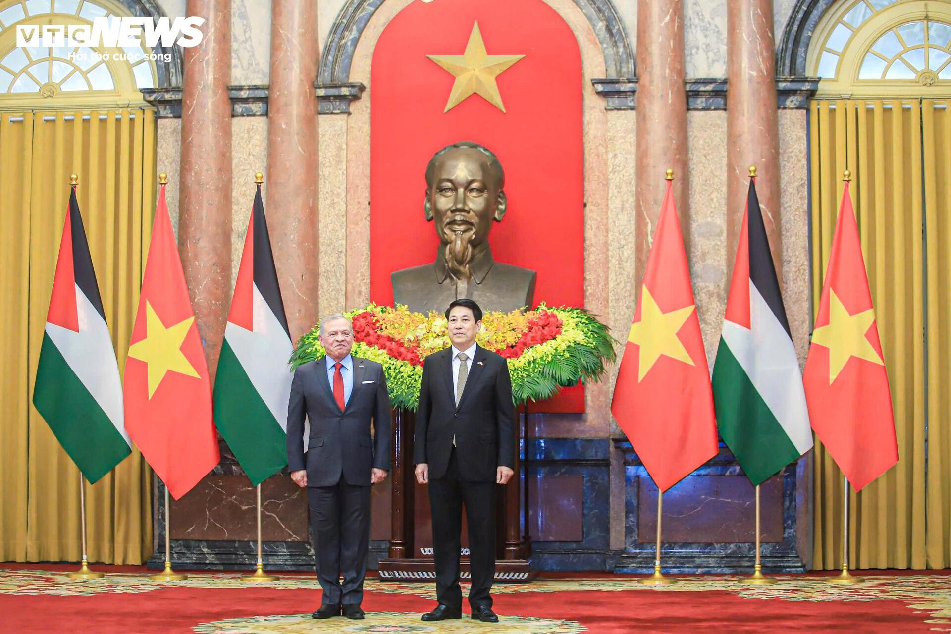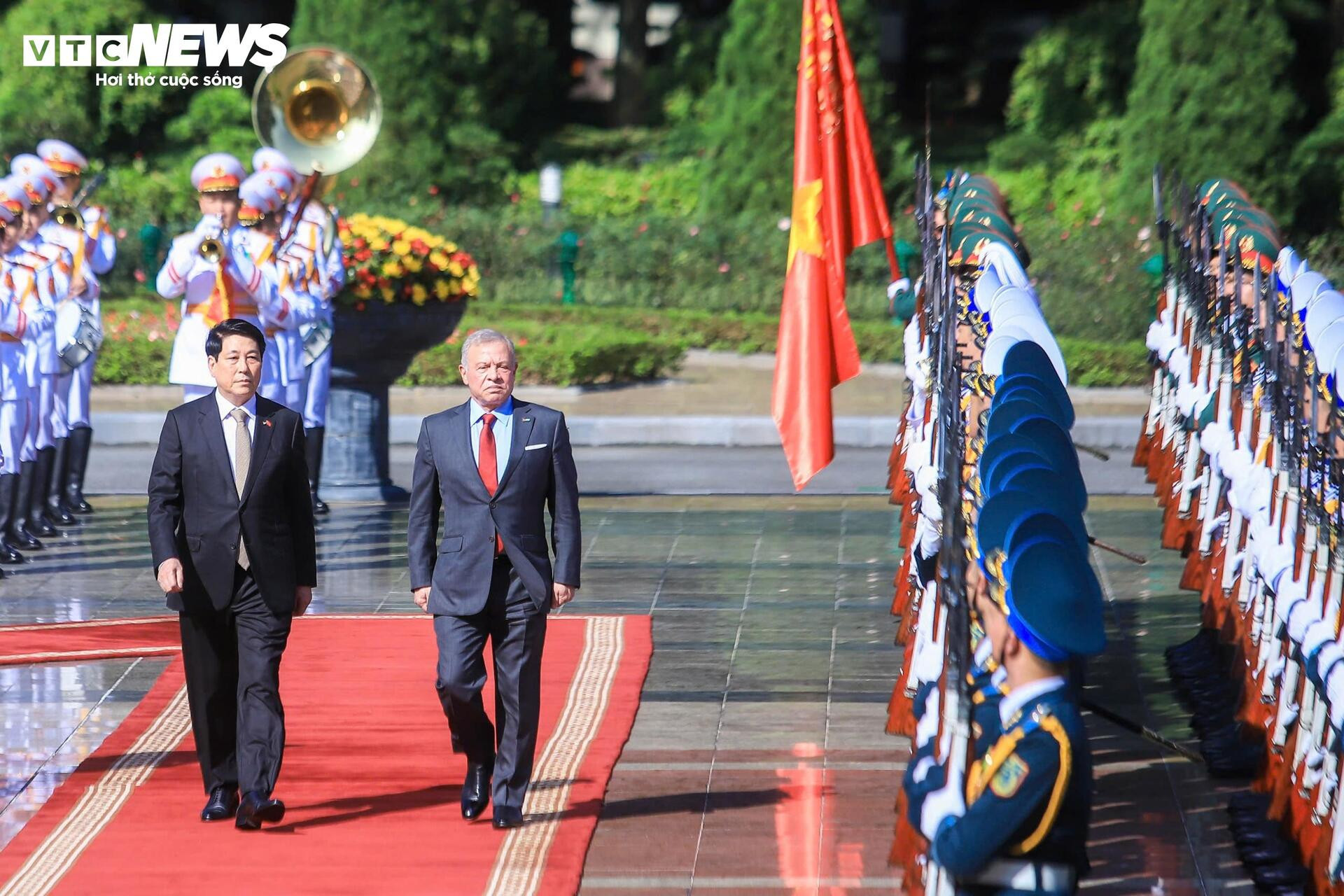 Chủ tịch nước Lương Cường và Quốc vương Vương quốc Hashemite Jordan Abdullah II Ibn Al Hussein duyệt đội danh dự Quân đội Nhân dân Việt Nam.