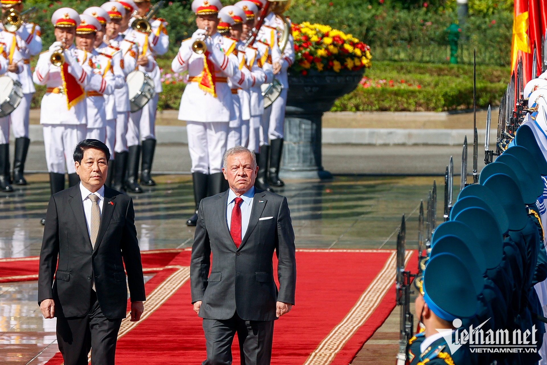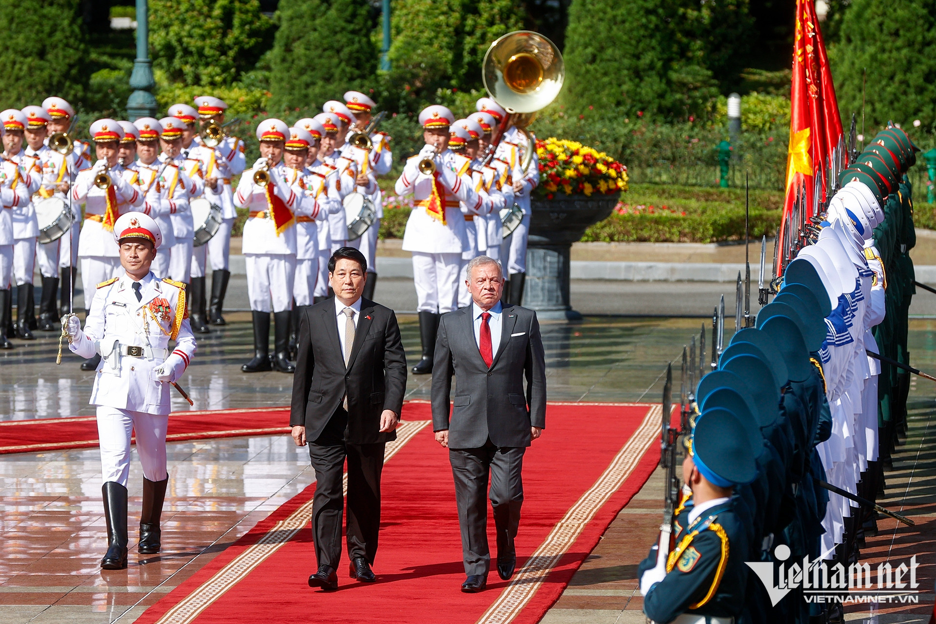 Chủ tịch nước Lương Cường và Quốc vương Abdullah II Ibn Al Hussein duyệt Đội danh dự Quân đội nhân dân Việt Nam