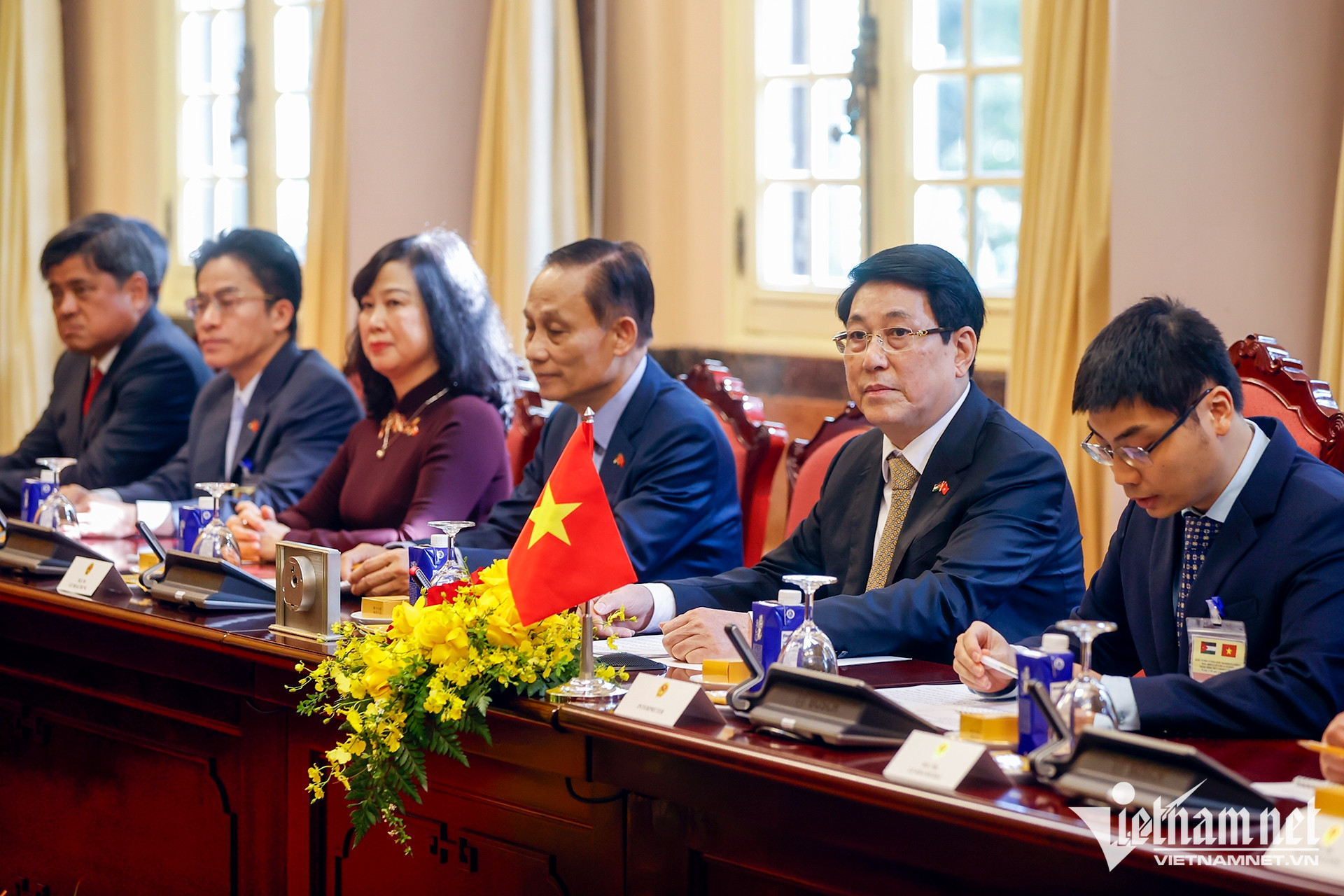 Ngay sau lễ đón, hai lãnh đạo tiến hành hội đàm.