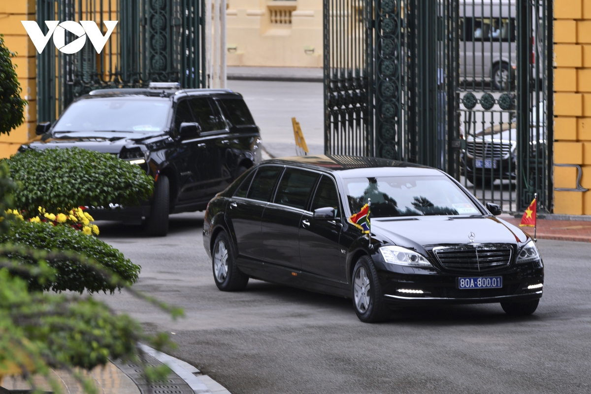 Đoàn xe chở Tổng thống Nam Phi Cyril Ramaphosa tiến vào Phủ Chủ tịch.
