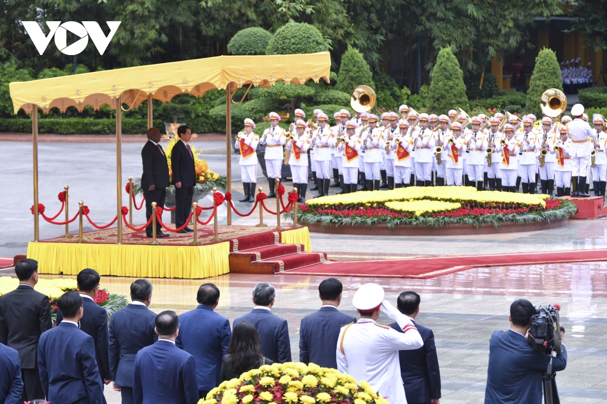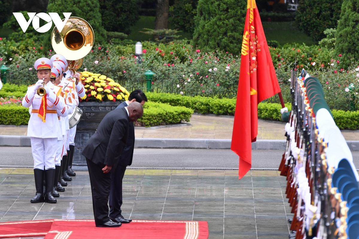 Đội danh dự Quân đội nhân dân Việt Nam chúc sức khỏe Tổng thống Nam Phi Cyril Ramaphosa.