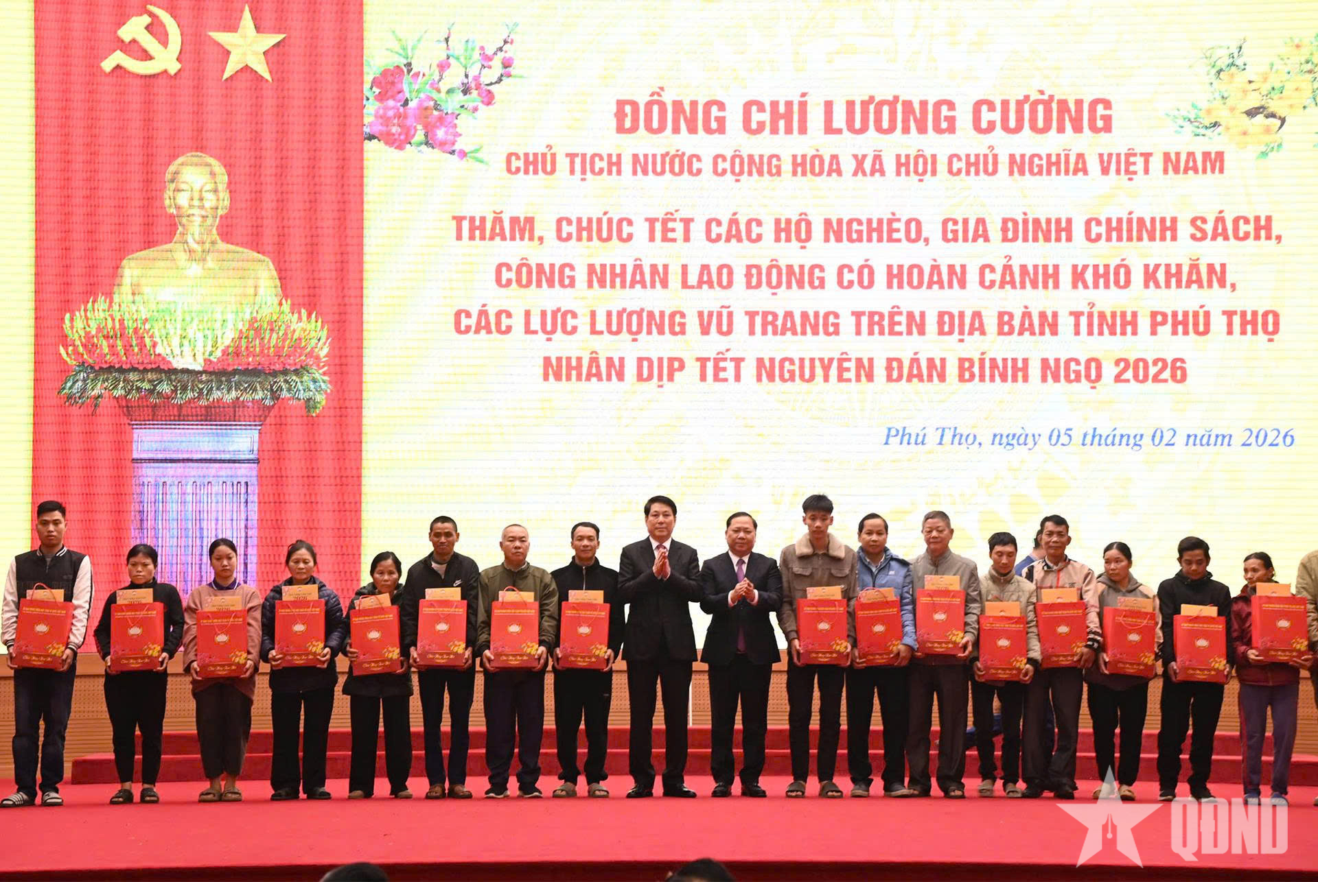 Nhân dịp chuẩn bị đón Tết Nguyên đán Bính Ngọ 2026, Chủ tịch nước Lương Cường tặng quà cấp ủy, chính quyền tỉnh Phú Thọ; các hộ nghèo, gia đình chính sách, công nhân, lao động có hoàn cảnh khó khăn và LLVT trên địa bàn tỉnh Phú Thọ.