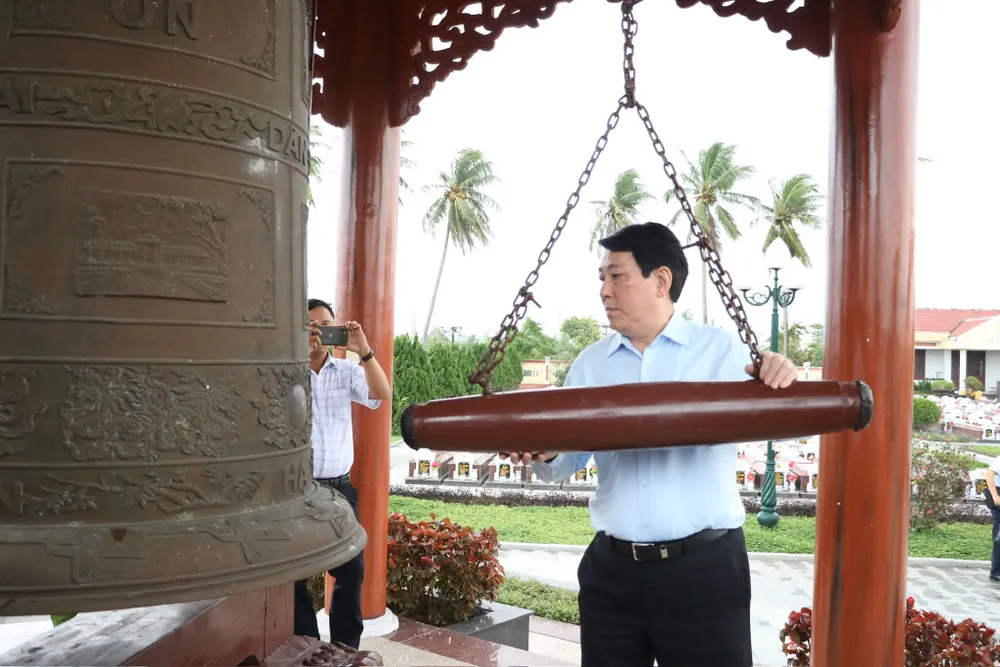 Chủ tịch nước thỉnh chuông tri ân các anh hùng liệt sĩ. Ảnh: Cổng TTĐT Đà Nẵng