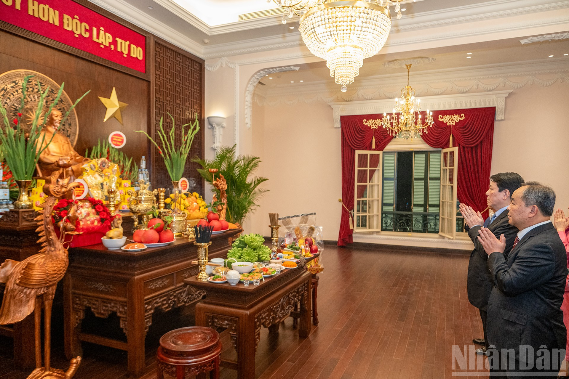 Chủ tịch nước Lương Cường tưởng nhớ Chủ tịch Hồ Chí Minh tại Trụ sở làm việc Cơ quan Chủ tịch nước ở Bắc Bộ Phủ.