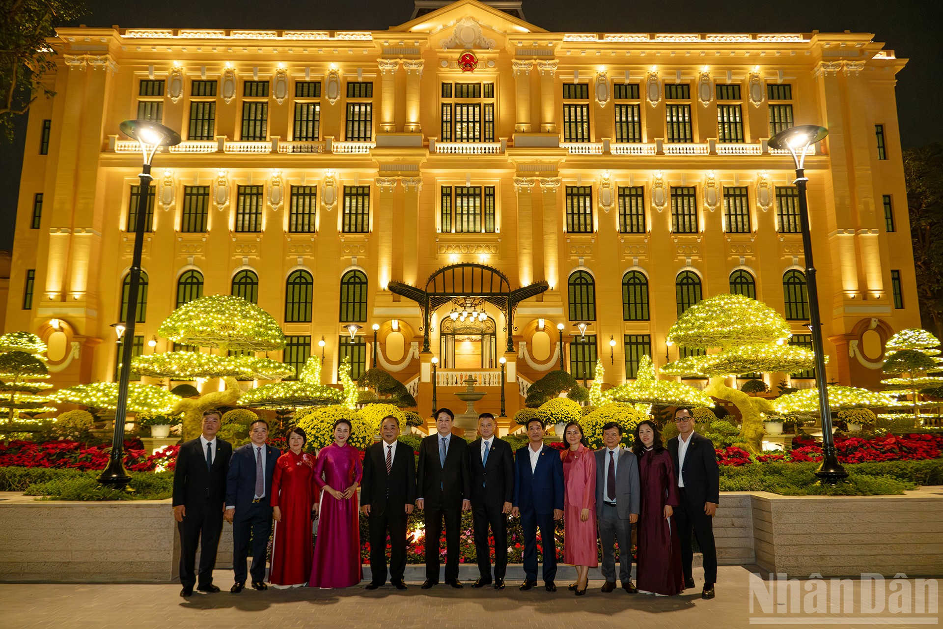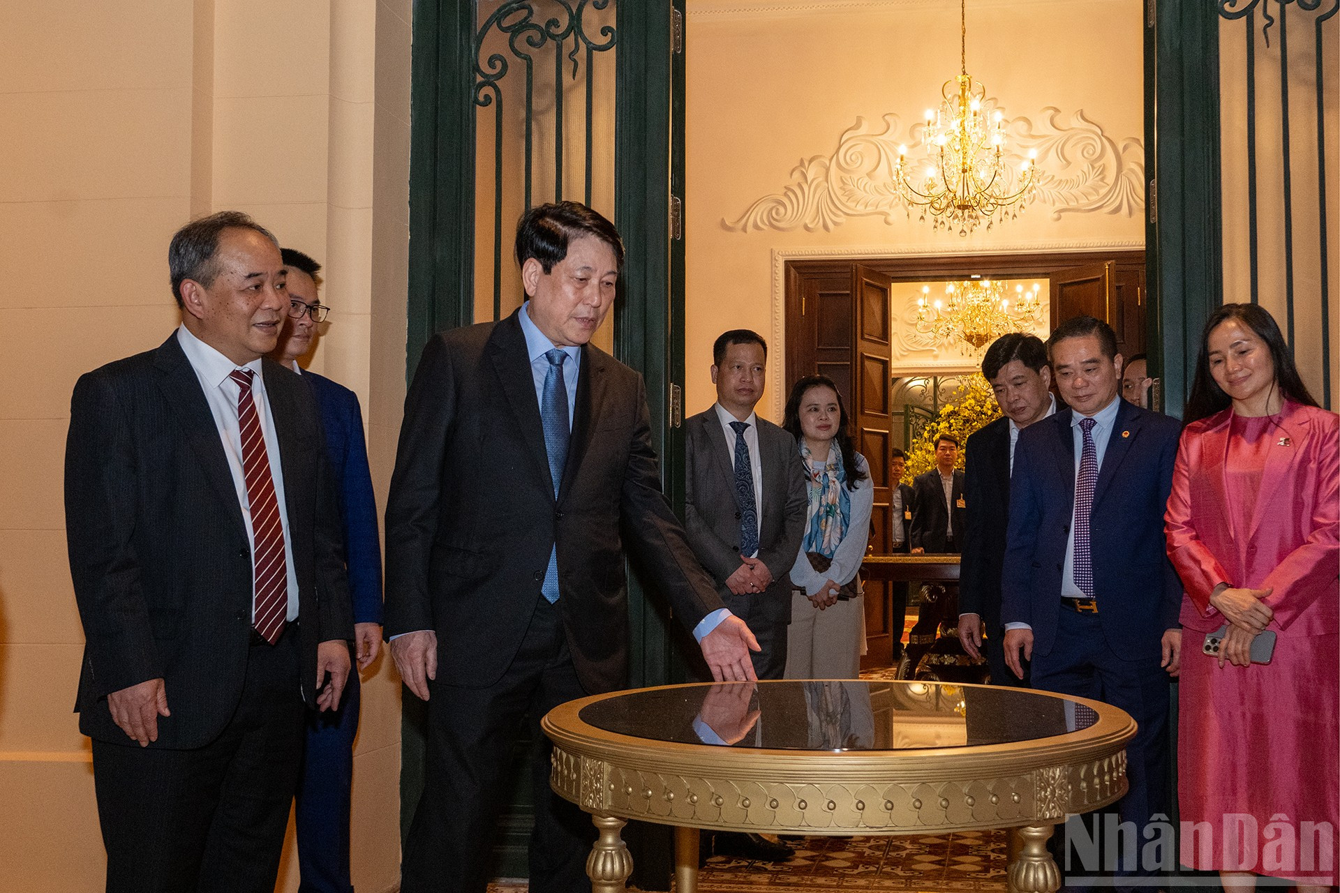 Chủ tịch nước Lương Cường và các đại biểu tham quan Trụ sở làm việc Cơ quan Chủ tịch nước ở Bắc Bộ Phủ.
