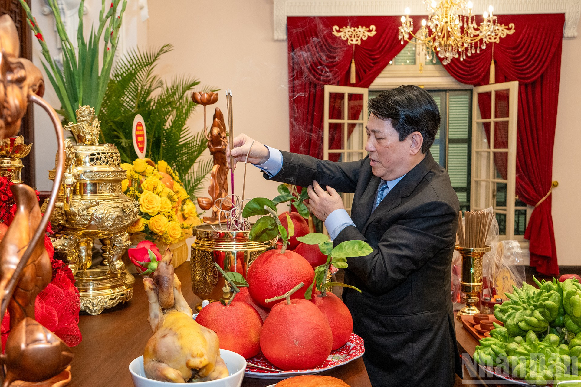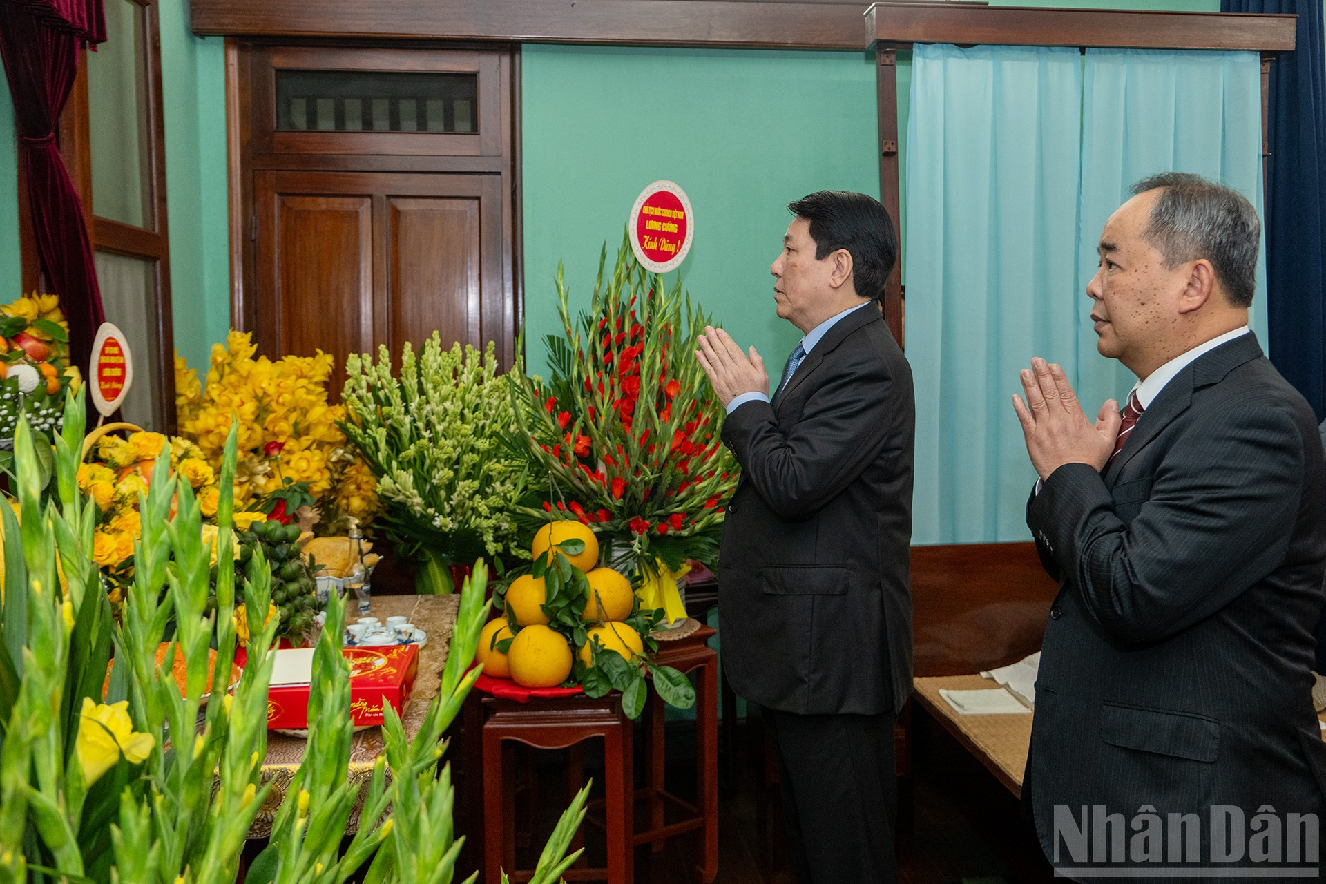 Chủ tịch nước Lương Cường dâng hương tưởng nhớ Chủ tịch Hồ Chí Minh tại Trụ sở làm việc Cơ quan Chủ tịch nước ở Bắc Bộ Phủ.
