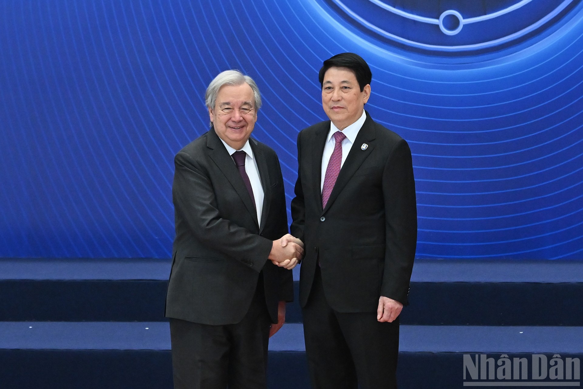 Chủ tịch nước Lương Cường đón Tổng Thư ký Liên hợp quốc Antonio Guterres tới dự Lễ mở ký.