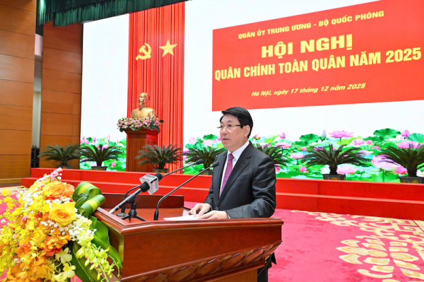 Phát biểu tại hội nghị, thay mặt lãnh đạo Đảng, Nhà nước, Chủ tịch nước biểu dương và chúc mừng những thành tích mà Quân ủy Trung ương, Bộ Quốc phòng và cán bộ, chiến sĩ toàn quân đã nỗ lực, phấn đấu đạt được trong năm 2025.