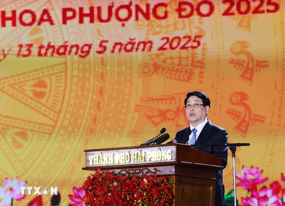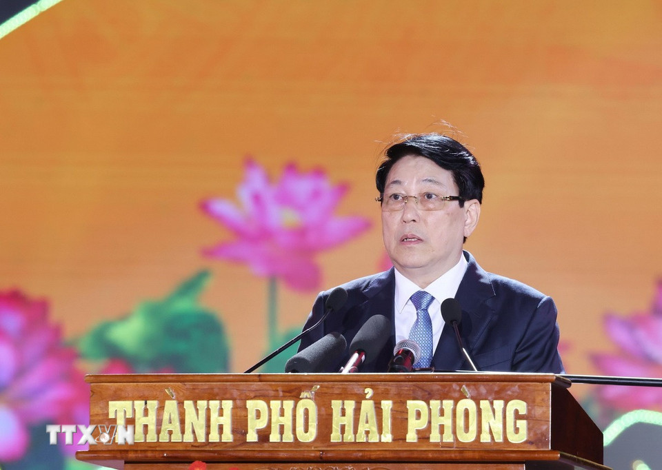 Chủ tịch nước Lương Cường dự lễ kỷ niệm 70 năm Ngày giải phóng Hải Phòng (13/5/1955-13/5/2025). (Ảnh: Lâm Khánh/TTXVN)