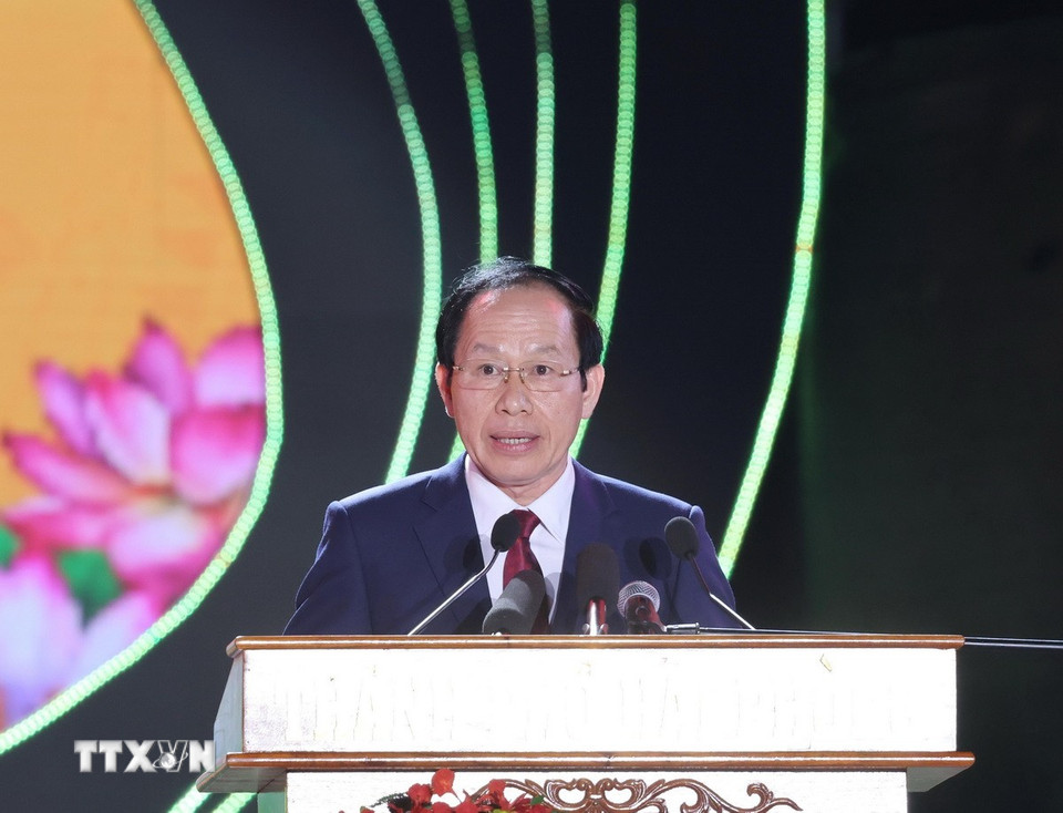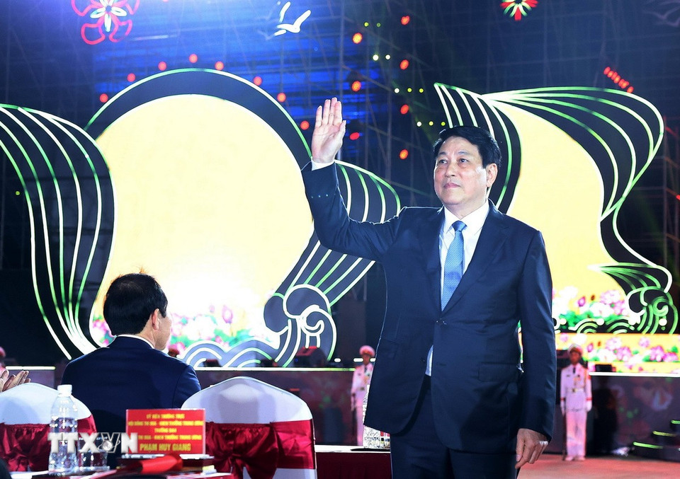 Chủ tịch nước Lương Cường phát biểu tại buổi lễ. (Ảnh: Lâm Khánh/TTXVN)