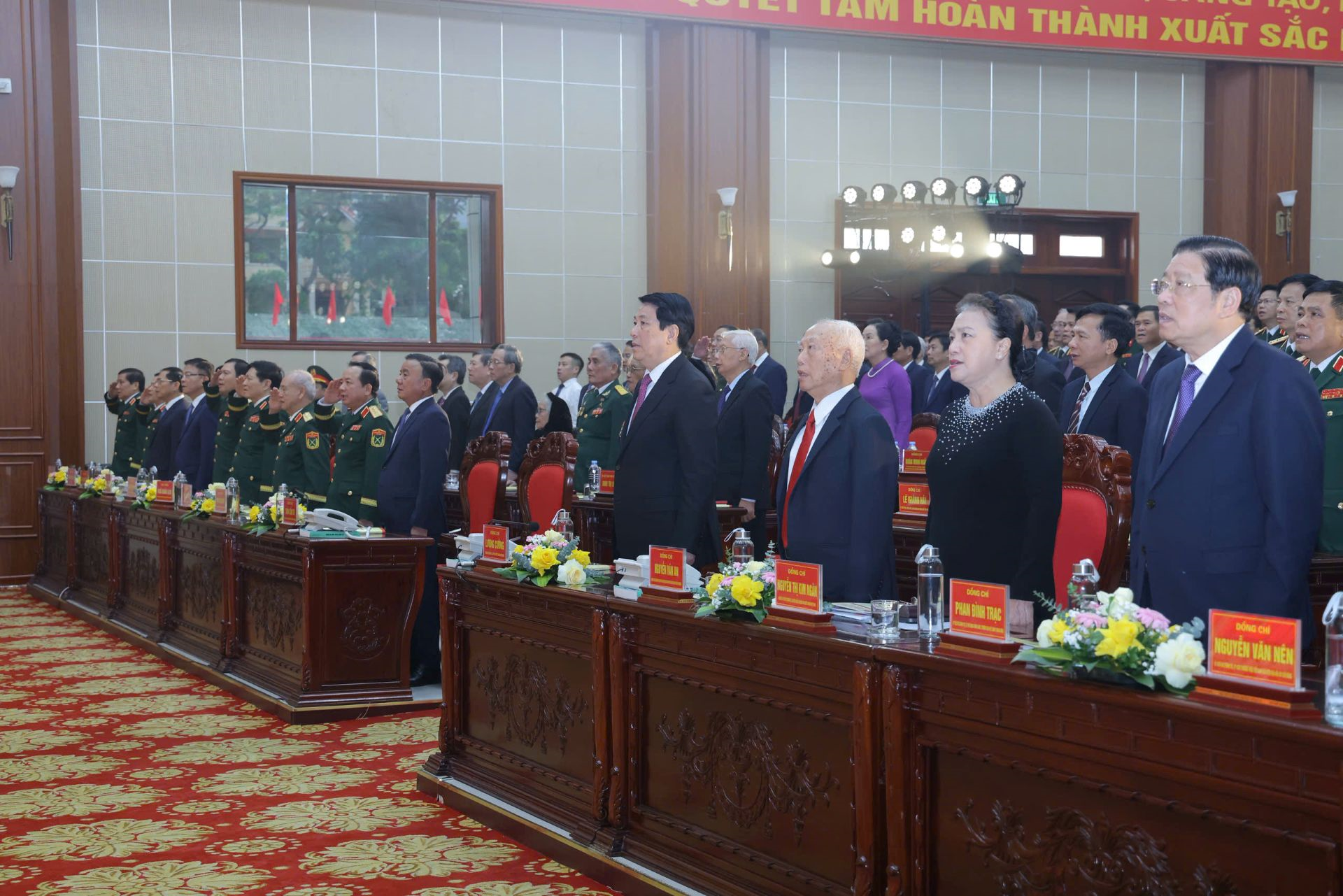 Chủ tịch nước Lương Cường và Đại tướng Trịnh Văn Quyết, Đại tướng Nguyễn Tân Cương cùng các đại biểu và lãnh đạo chủ chốt Bộ tư lệnh Quân khu 3.