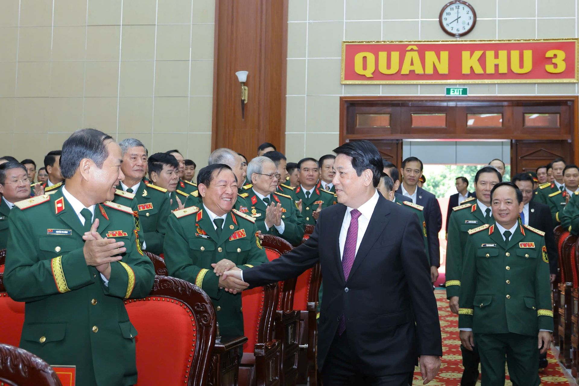 Phát biểu tại buổi lễ, Chủ tịch nước nêu rõ, trải qua 80 năm xây dựng, chiến đấu và trưởng thành, dưới sự lãnh đạo của Đảng Cộng sản Việt Nam, thường xuyên, trực tiếp là Quân ủy Trung ương, Bộ Quốc phòng; sự thương yêu, đùm bọc của nhân dân, các thế hệ cán bộ, chiến sĩ LLVT Quân khu 3 luôn giữ vững, phát huy truyền thống lịch sử oanh liệt, hào hùng của vùng đất “Căn bản”, “địa linh nhân kiệt”, giàu truyền thống lịch sử, văn hóa châu thổ sông Hồng và của dân tộc Việt Nam; tuyệt đối trung thành với Đảng, với Tổ quốc và nhân dân; đoàn kết gắn bó, nỗ lực vượt qua mọi khó khăn, thử thách, anh dũng chiến đấu, lập nhiều chiến công xuất sắc, cùng với toàn Đảng, toàn dân và toàn quân giành những thắng lợi vĩ đại trong sự nghiệp đấu tranh giải phóng dân tộc, xây dựng và bảo vệ Tổ quốc và làm tròn nghĩa vụ quốc tế vẻ vang.