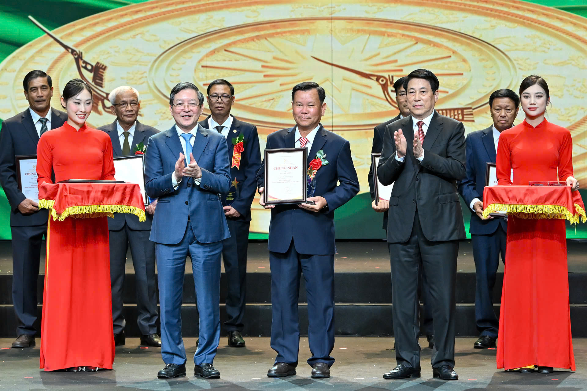 Thay mặt lãnh đạo Đảng, Nhà nước, Chủ tịch nước chúc mừng và biểu dương những nỗ lực, cố gắng, đóng góp quan trọng của những nông dân tiêu biểu xuất sắc và các “Nhà khoa học của nhà nông” trong sự nghiệp xây dựng và đổi mới đất nước. Chủ tịch nước cũng hoan nghênh, biểu dương Hội Nông dân Việt Nam đã có sáng kiến rất thiết thực, chủ động phối hợp với các bộ, ngành tổ chức Chương trình “Tự hào nông dân Việt Nam”, tổ chức Lễ tôn vinh và trao danh hiệu “Nông dân Việt Nam xuất sắc” suốt 13 năm qua, để ghi nhận, động viên, cổ vũ những gương nông dân điển hình tiên tiến, gương người tốt, việc tốt trong phong trào thi đua yêu nước, phát triển nông nghiệp, xây dựng nông thôn mới và bảo vệ Tổ quốc.