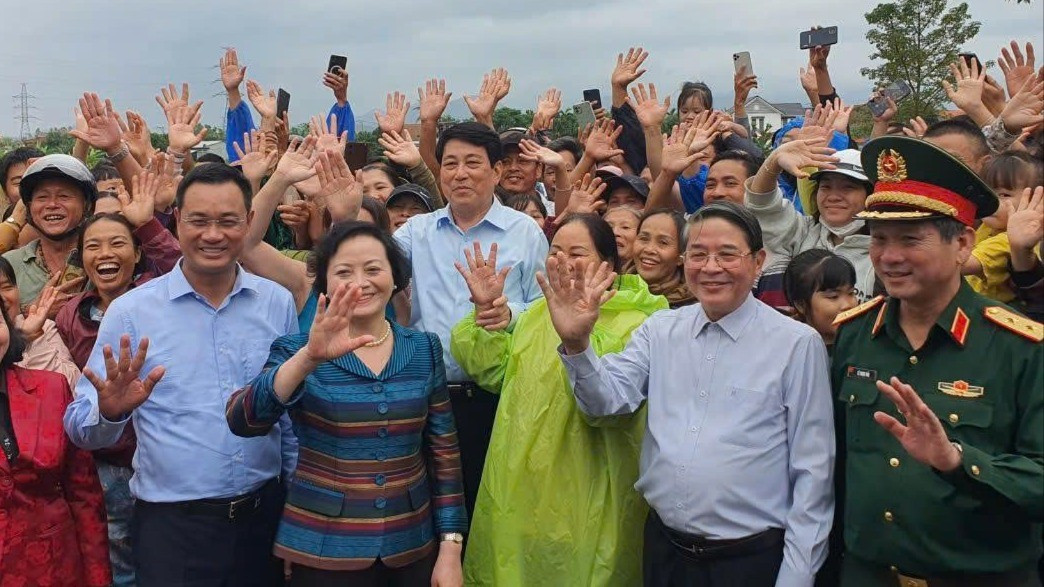 Chủ tịch nước Lương Cường nhấn mạnh Đảng, Nhà nước đã và đang làm tất cả mọi việc để kịp thời hỗ trợ đồng bào vùng bị bão lũ sớm ổn định cuộc sống. Đồng thời, Đảng và Nhà nước cũng đang chỉ đạo Chính phủ, các cấp, ngành xây dựng chiến lược tổng thể ứng phó với thiên tai, bão lũ, ưu tiên ngân sách nâng cấp đê điều, chống ngập ở đô thị, sạt lở ở vùng núi, khuyến khích làm nhà nổi, nhà trên sàn bê tông ở vùng trũng, bị ngập úng và triều cường...