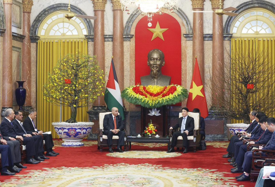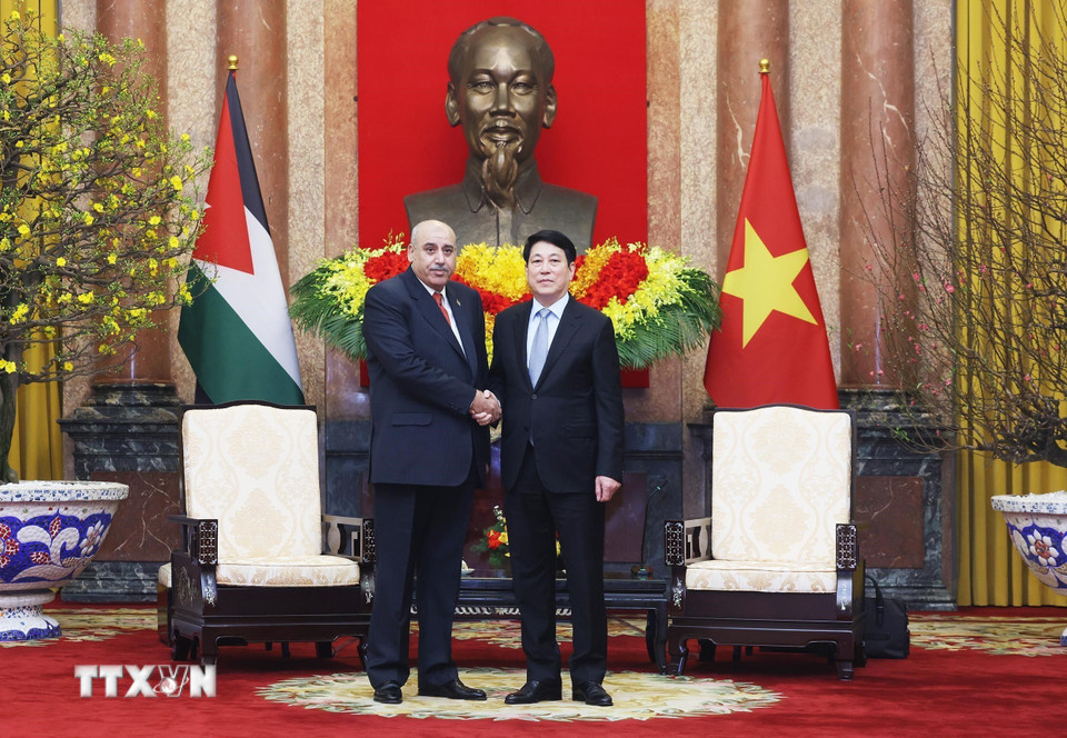 Chủ tịch nước Lương Cường hội kiến Chủ tịch Hạ viện Vương quốc Hashemite Jordan Mazen Turki El Qadi đang thăm chính thức Việt Nam. (Ảnh: Lâm Khánh/TTXVN)