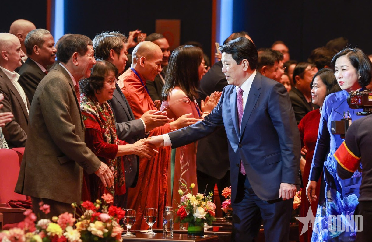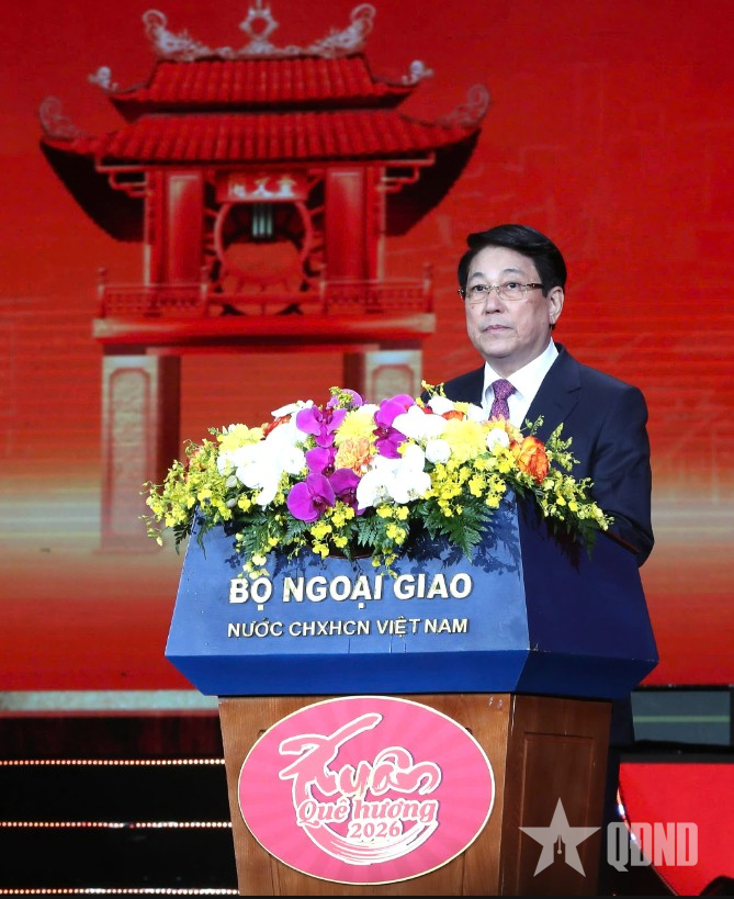Phát biểu tại chương trình, Chủ tịch nước Lương Cường điểm lại những thành tựu kinh tế-xã hội nổi bật của đất nước trong năm 2025. Chủ tịch nước nêu rõ, năm 2025, là một năm đất nước ta phải gồng mình gánh chịu ảnh hưởng và hậu quả rất nặng nề của thiên tai; cùng với đó, tình hình quốc tế và khu vực diễn biến phức tạp, khó lường, xung đột bùng nổ và kéo dài ở nhiều nơi, kinh tế thế giới đối mặt với nhiều khó khăn và suy giảm, tác động không nhỏ đến tình hình trong nước cũng như đồng bào ta ở nước ngoài.