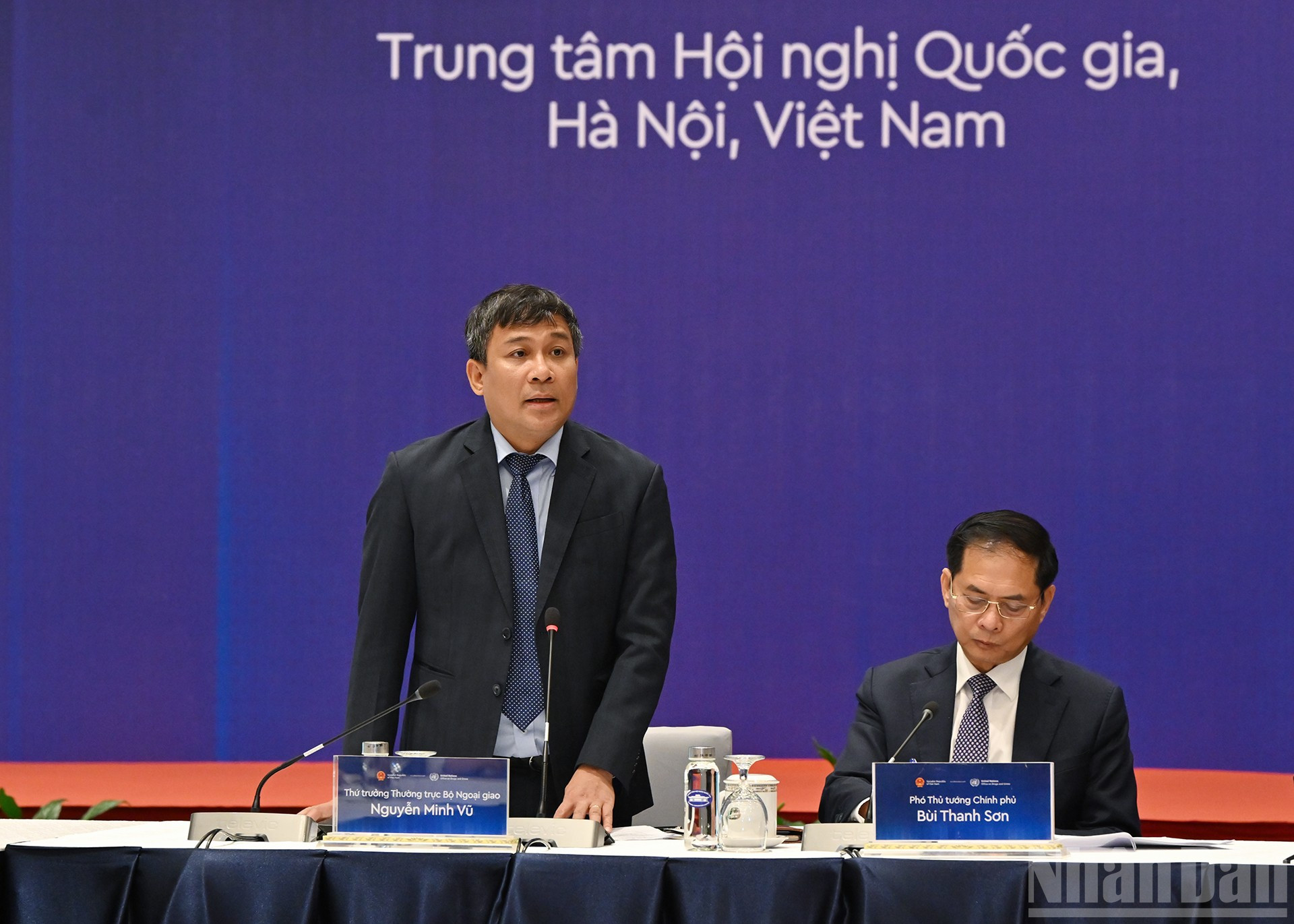 Thứ trưởng Thường trực Bộ Ngoại giao Nguyễn Minh Vũ báo cáo tại buổi làm việc.