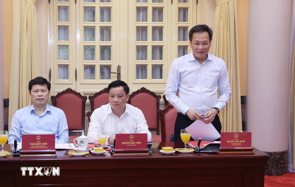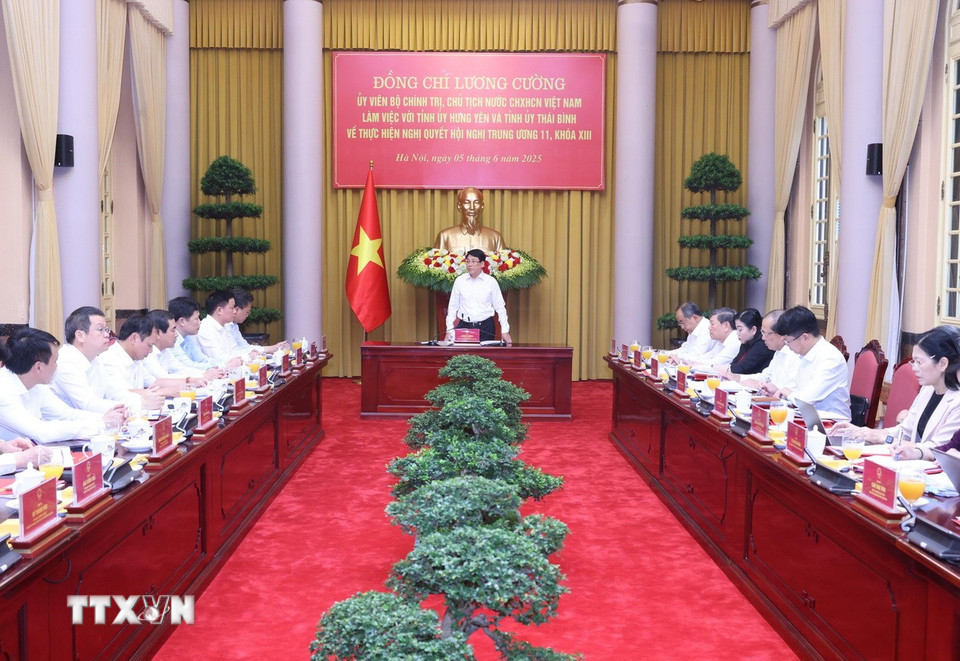 Chủ tịch nước Lương Cường làm việc với Tỉnh ủy Hưng Yên và Tỉnh ủy Thái Bình về việc thực hiện Nghị quyết Hội nghị Trung ương 11, khóa XIII. (Ảnh: Lâm Khánh/TTXVN)