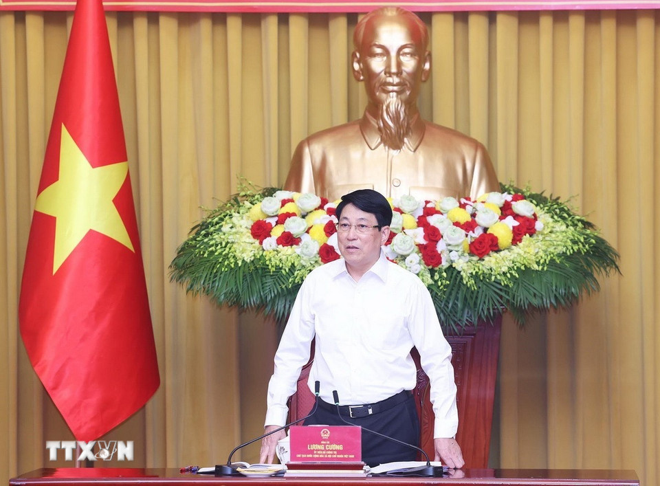 Chủ tịch nước Lương Cường phát biểu chỉ đạo. (Ảnh: Lâm Khánh/TTXVN)