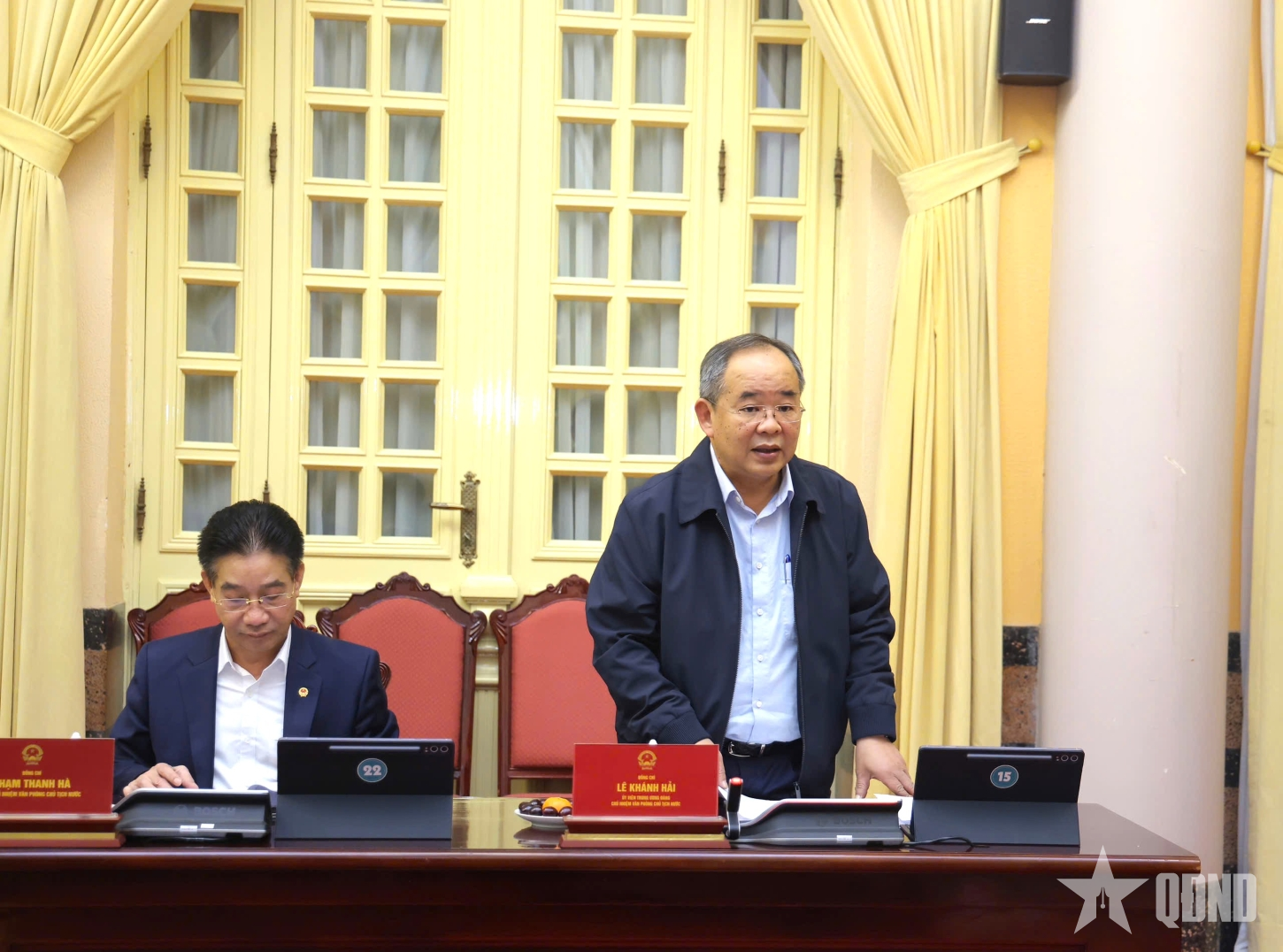 Đồng chí Lê Khánh Hải, Chủ nhiệm Văn phòng Chủ tịch nước phát biểu tại buổi làm việc.