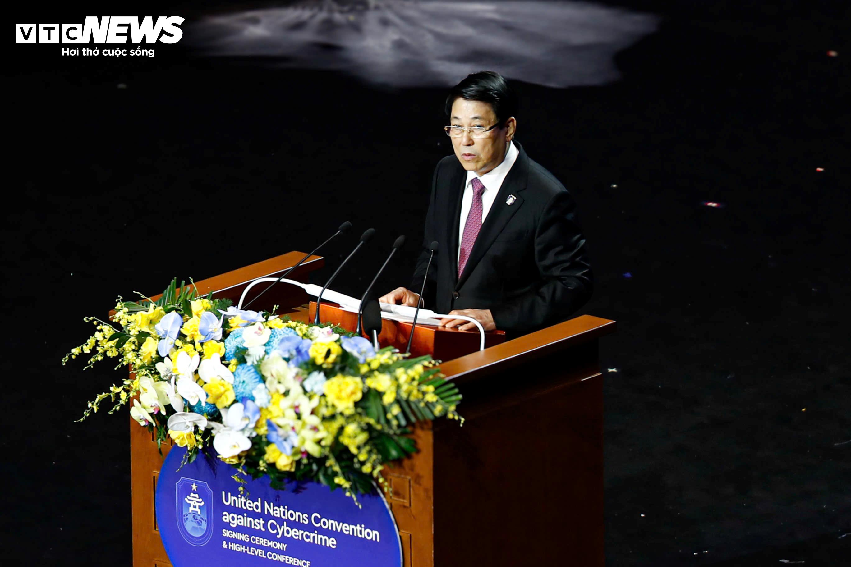 Chủ tịch nước Lương Cường khẳng định, với chủ đề "Chống tội phạm mạng, chia sẻ trách nhiệm, hướng tới tương lai", Lễ mở ký hôm nay thể hiện tinh thần đoàn kết quốc tế và cam kết chung của các quốc gia cùng xây dựng một không gian mạng an toàn, lành mạnh và bền vững.