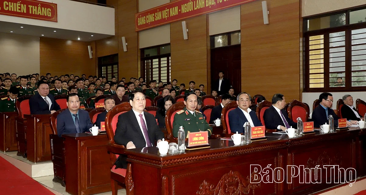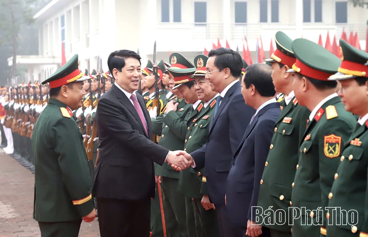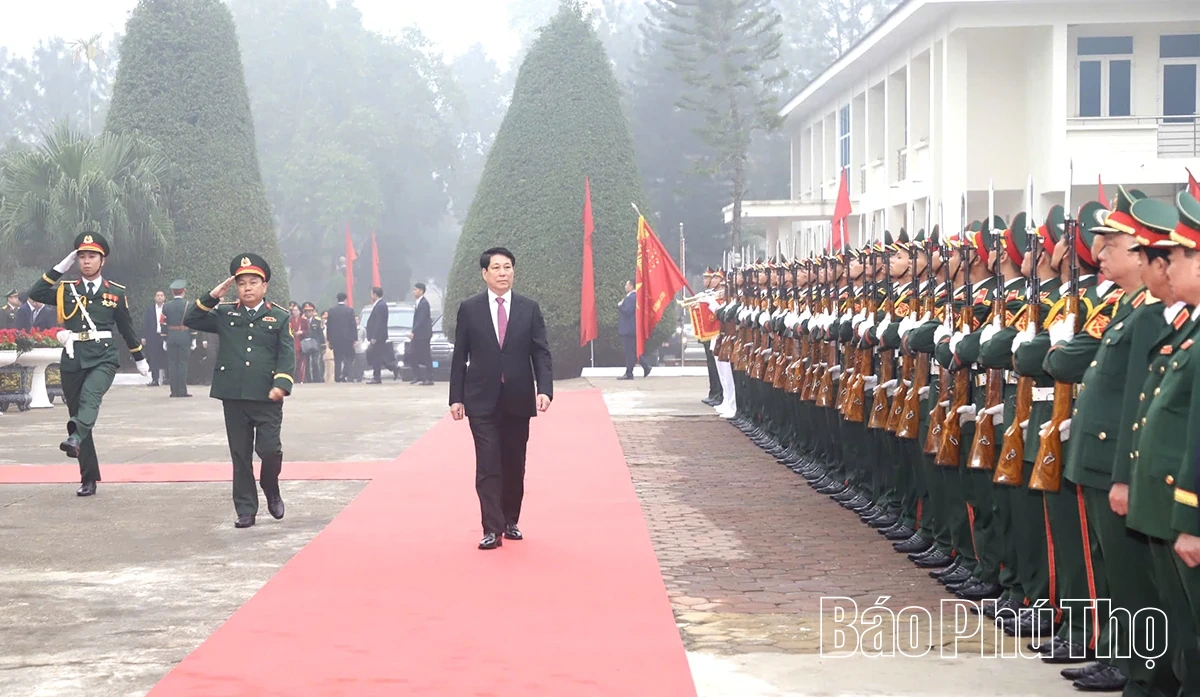 Trong chương trình công tác, Chủ tịch nước Lương Cường và đoàn công tác Trung ương, Bộ Quốc phòng tặng quà, chúc Tết các hộ nghèo, gia đình chính sách, công nhân lao động có hoàn cảnh khó khăn và các lực lượng vũ trang trên địa bàn tỉnh Phú Thọ.