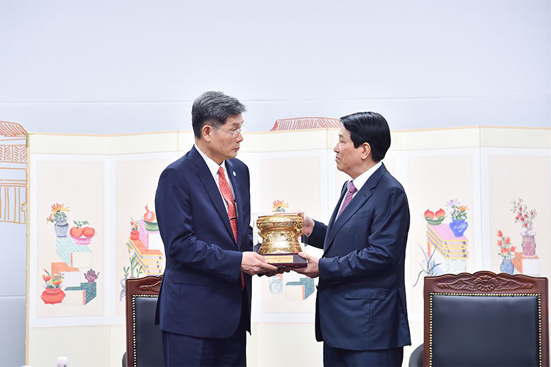 Chủ tịch nước Lương Cường và Chủ tịch Quỹ giao lưu quốc tế Hàn Quốc (KF) Kim Ghee Whan.