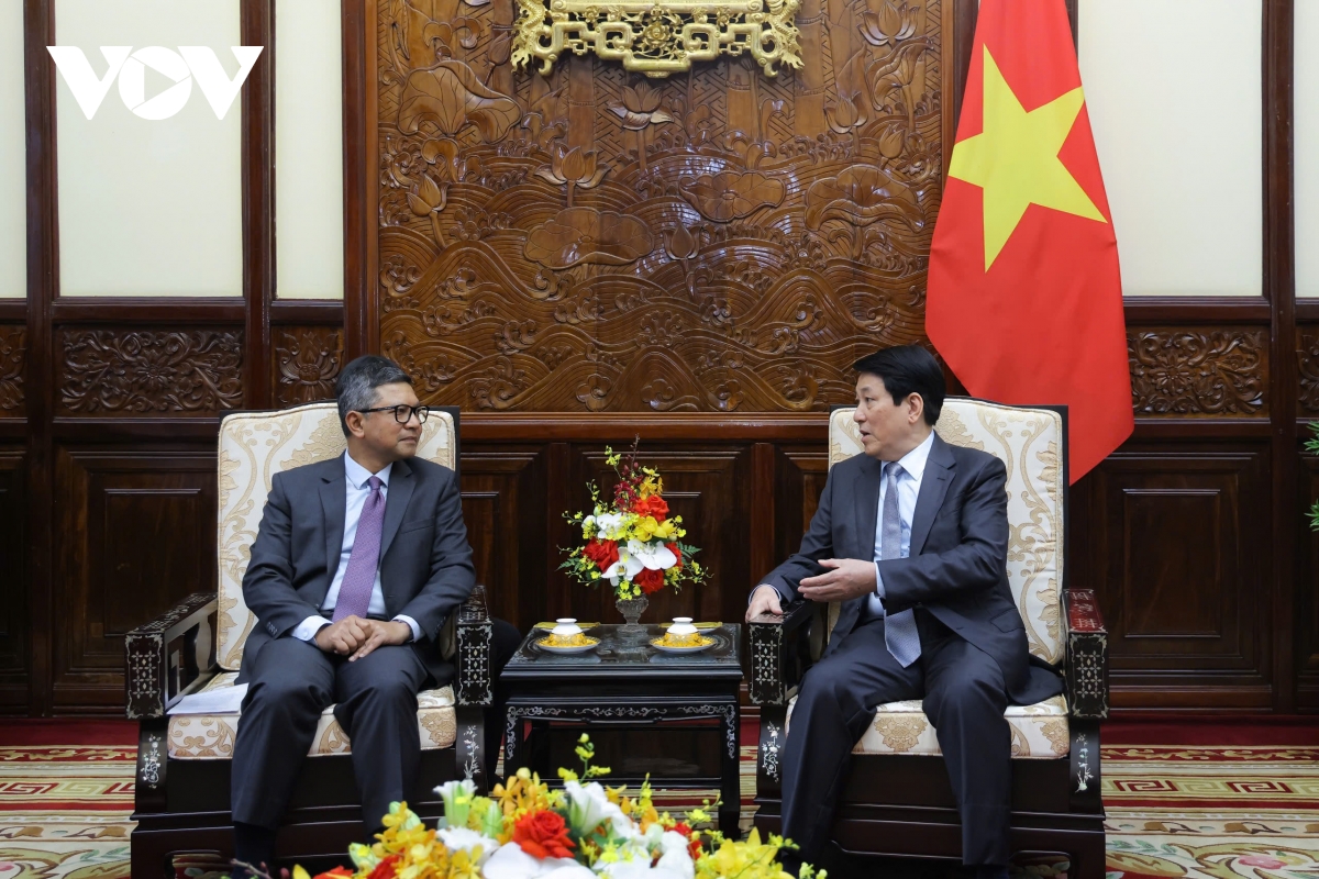 Chủ tịch nước Lương Cường trao đổi với Đại sứ Indonesia tại Việt Nam Denny Abdi.