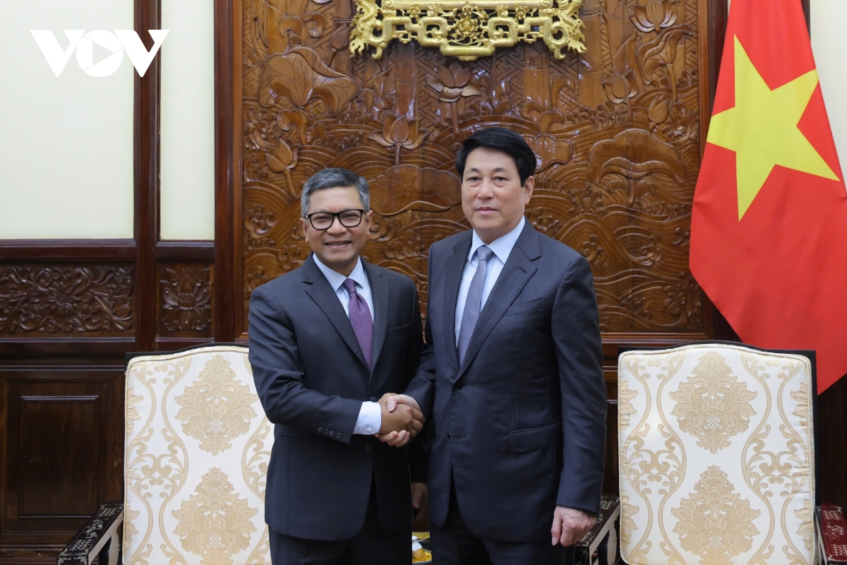 Chủ tịch nước Lương Cường và Đại sứ Indonesia tại Việt Nam Denny Abdi.