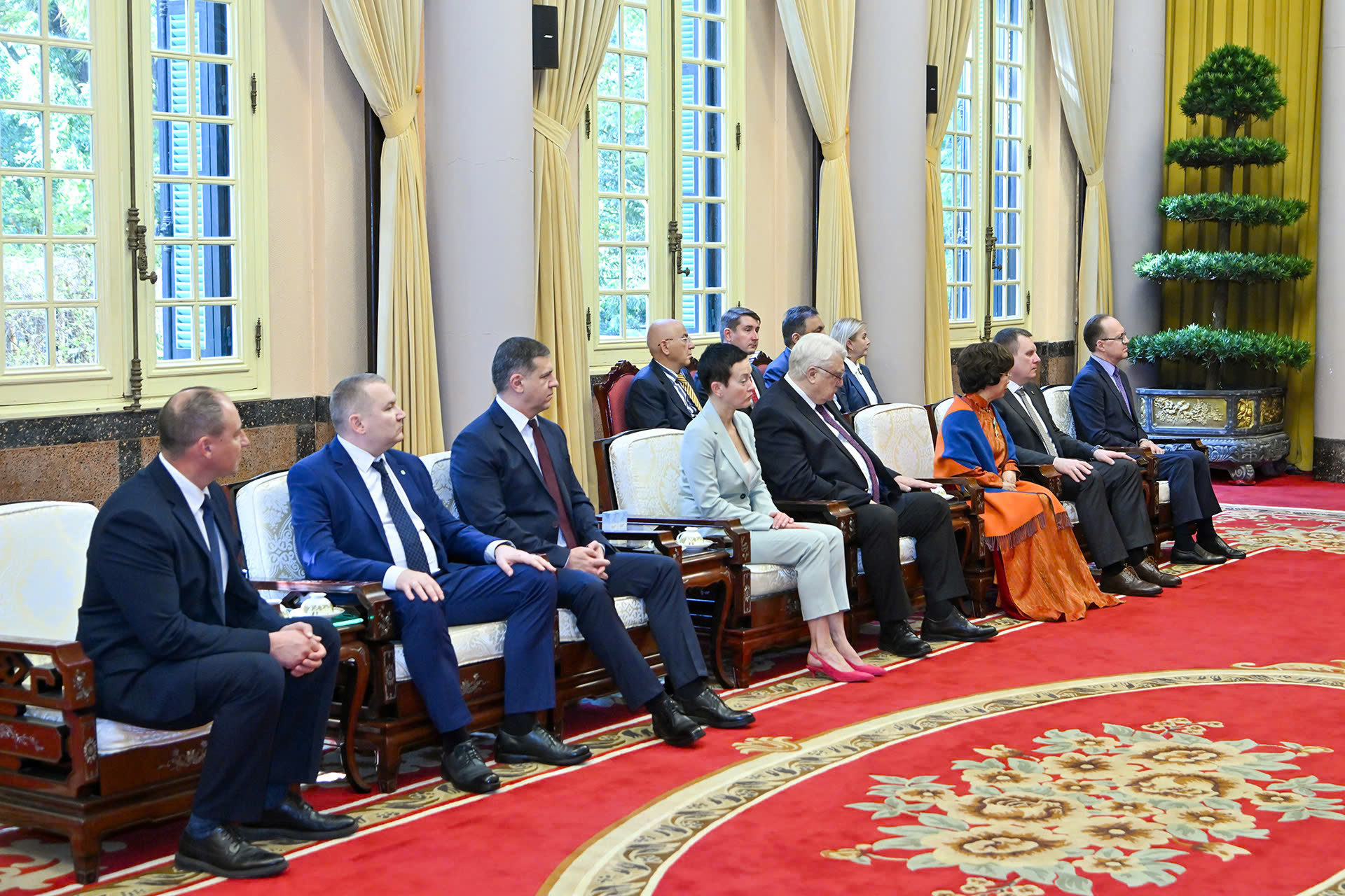 Các đại biểu tháp tùng Thống đốc tỉnh Kaluga (Liên bang Nga) Vladislav Valerievich Shapsha dự buổi tiếp.