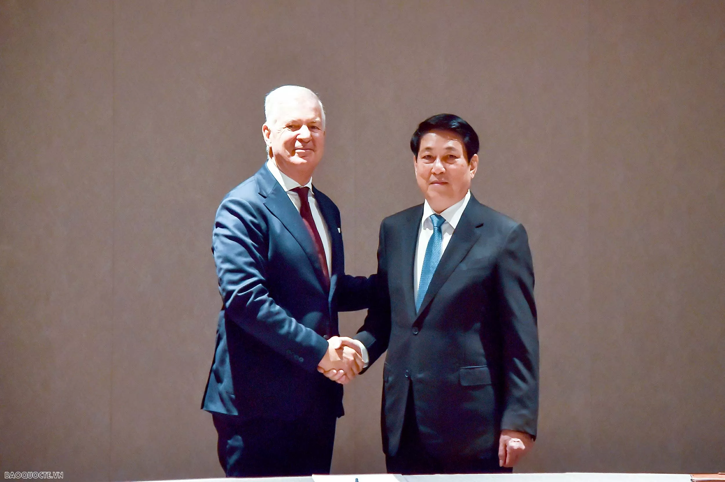 Chủ tịch nước Lương Cường khẳng định Việt Nam coi trọng hợp tác với ICC – tổ chức kinh doanh toàn cầu lớn nhất hiện nay. (Ảnh: Quang Hòa)