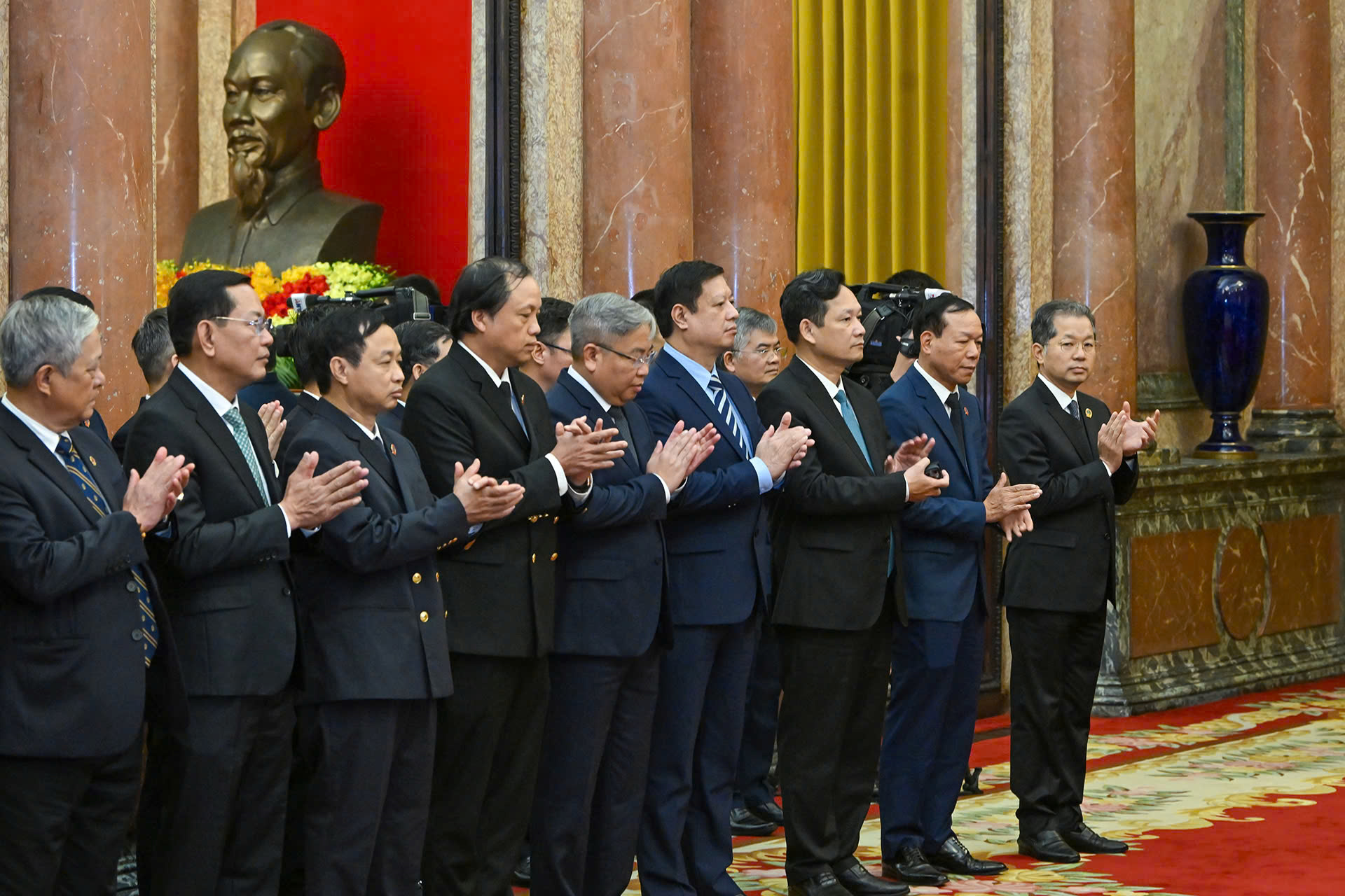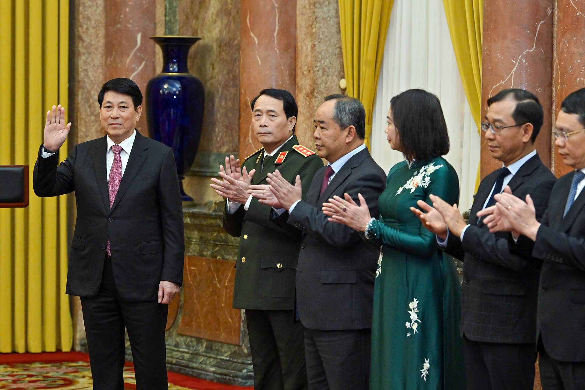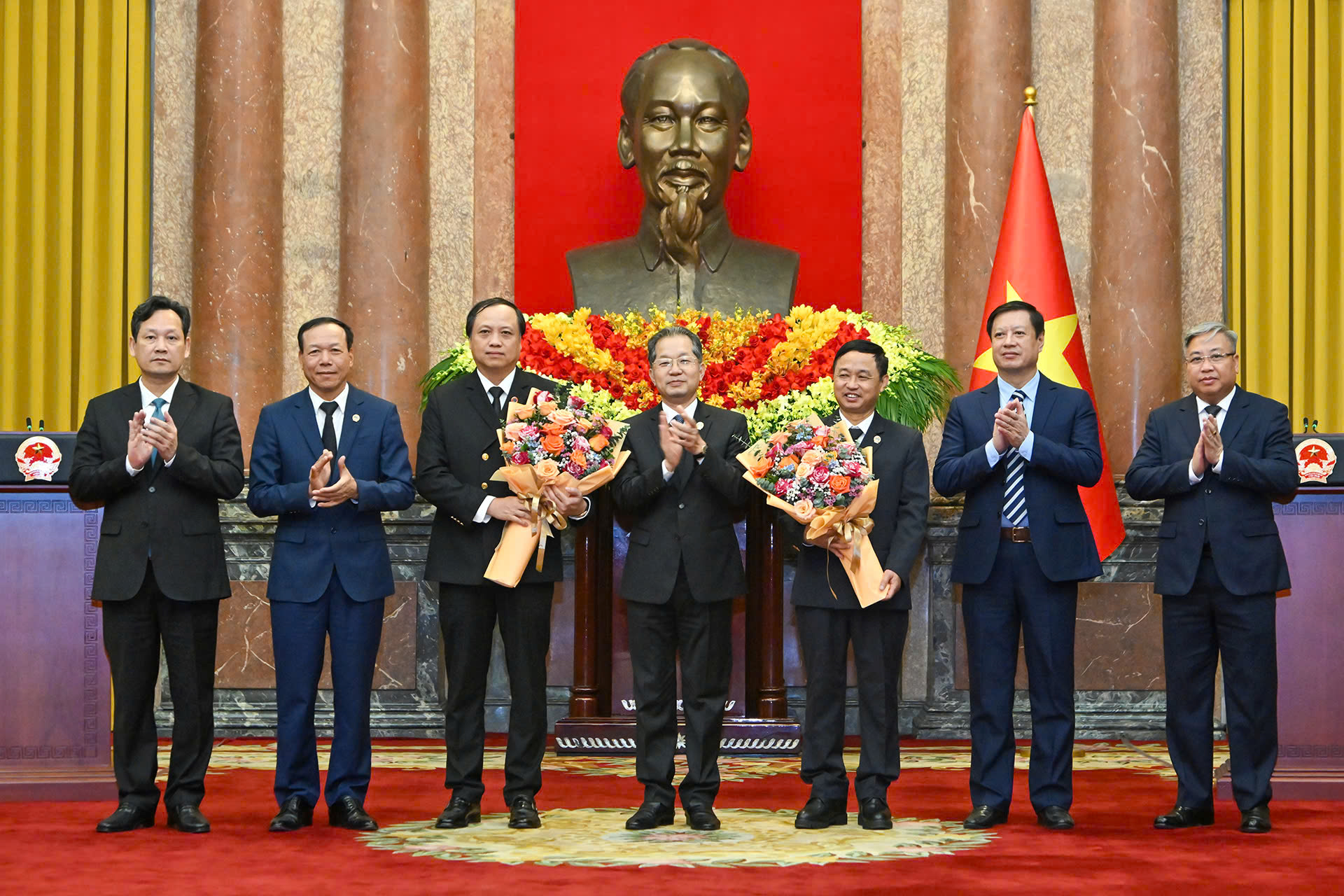 Chủ tịch nước Lương Cường và các đại biểu cùng các đồng chí được bổ nhiệm.