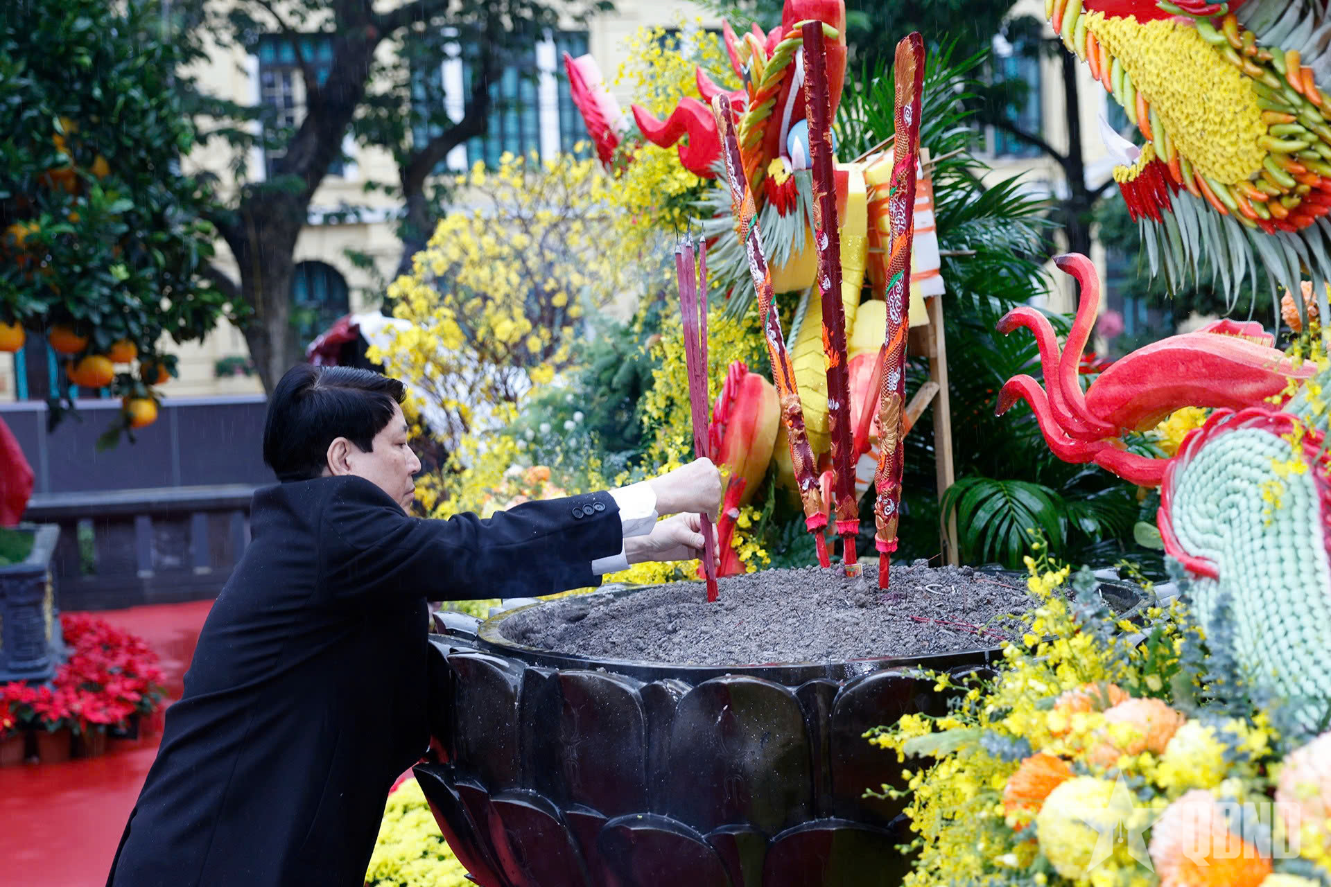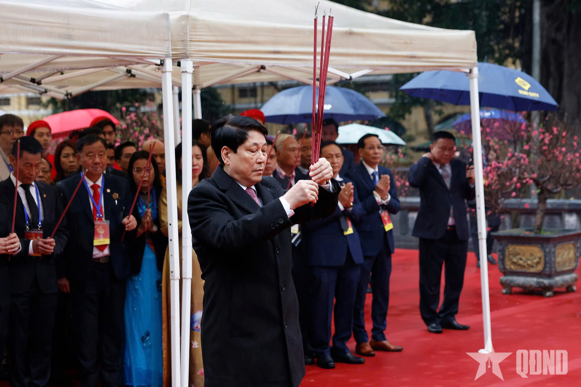 Trước đó, Chủ tịch nước Lương Cường và phu nhân cùng đoàn kiều bào tiêu biểu dự Chương trình Xuân Quê hương 2026 đã thực hiện nghi lễ dâng hương tại Tượng đài vua Lý Thái Tổ và đền Ngọc Sơn.