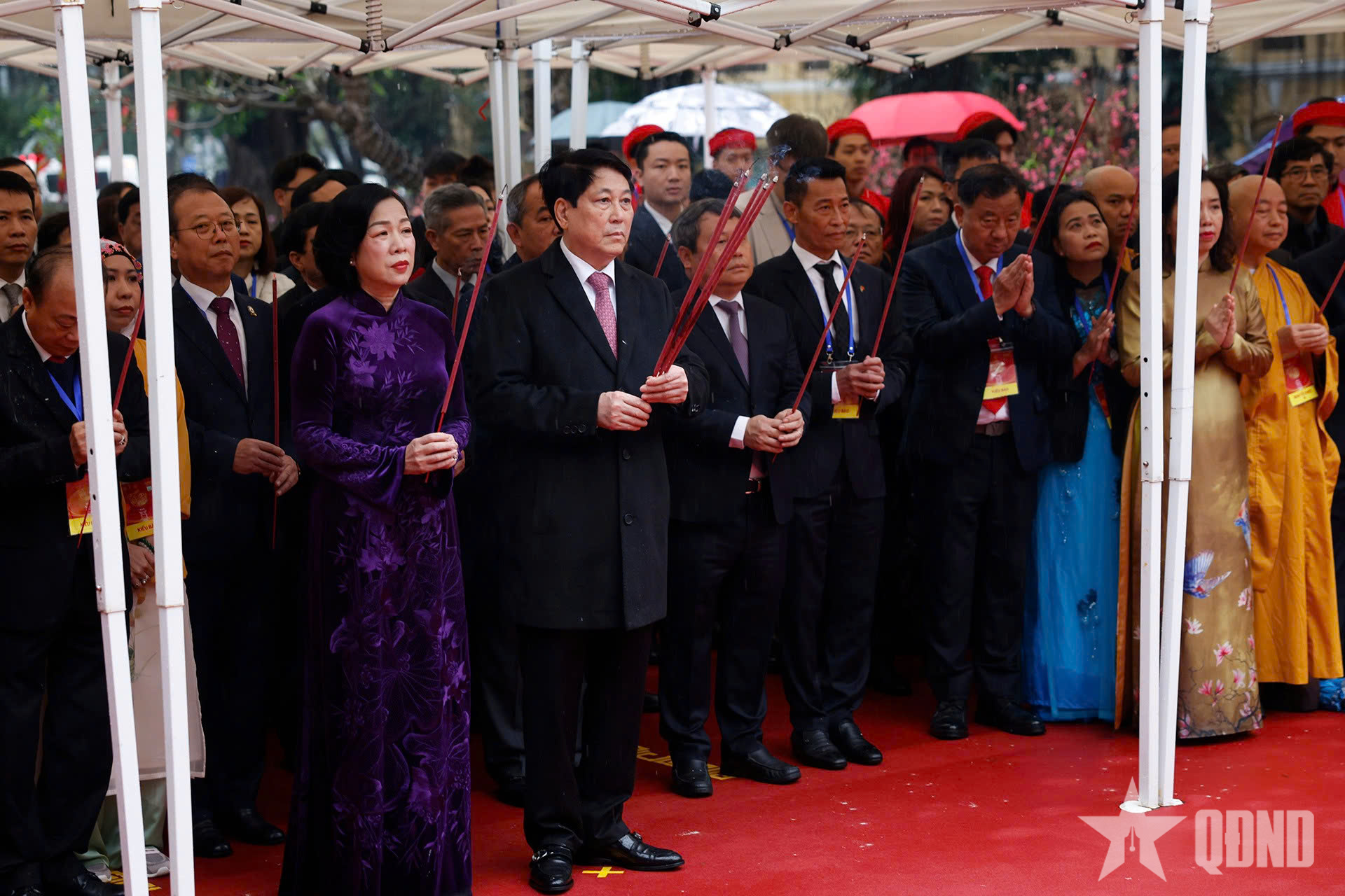 Chủ tịch nước và Phu nhân cùng các đại biểu, kiều bào đã thành kính dâng hương tưởng nhớ công ơn của đức Lý Thái Tổ và các vị tiên hiền, tiên liệt, các vị liệt tổ, liệt tông đã xây dựng và bảo vệ Thăng Long - Hà Nội nghìn năm văn hiến, gìn giữ non sông gấm vóc Việt Nam anh hùng, bồi đắp những giá trị văn hóa, lịch sử truyền thống vô cùng quý giá cho Thủ đô và đất nước mãi trường tồn; đồng thời, bày tỏ lòng thành kính cầu cho quốc thái dân an, đất nước vững tin bước vào kỷ nguyên phát triển mới với nhiều thành công đột phá hơn nữa vì hòa bình, độc lập, dân chủ, giàu mạnh, phồn vinh, văn minh, hạnh phúc; cũng như cẩn cáo với các bậc tiền nhân sự trở về quê Mẹ của bà con kiều bào từ khắp nơi trên thế giới.