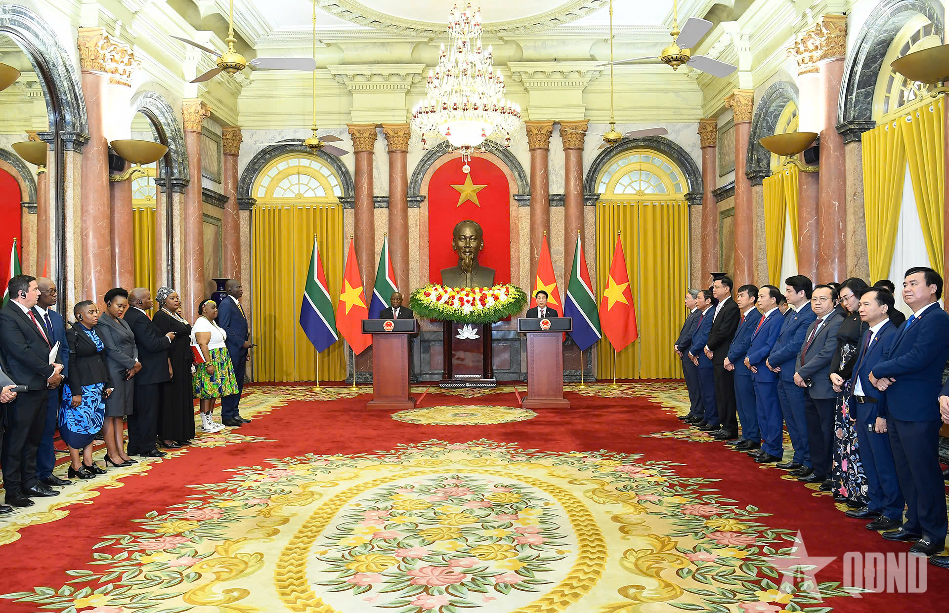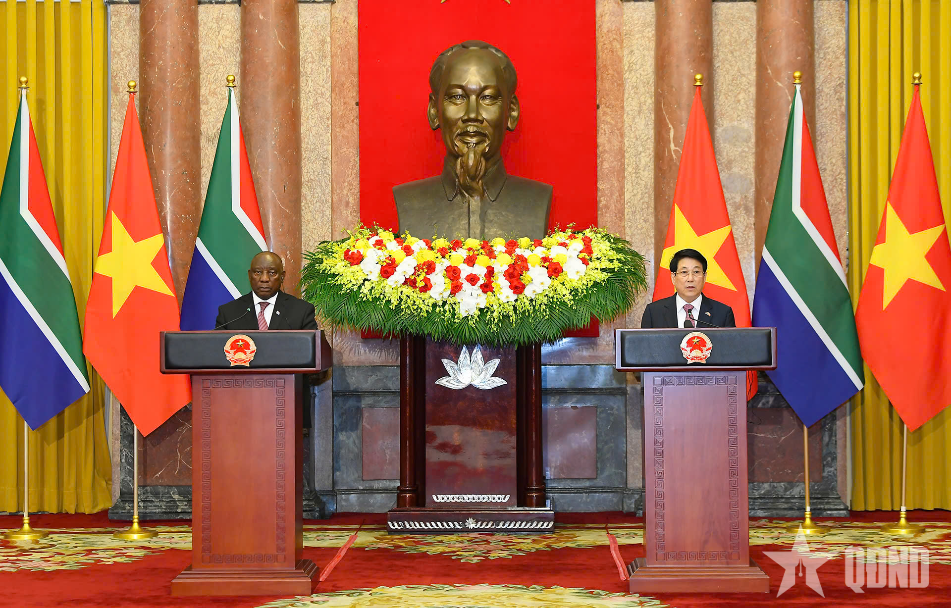 Về phần mình, Tổng thống Nam Phi Matamela Cyril Ramaphosa bày tỏ xúc động trước sự đón tiếp trọng thị, nồng hậu mà Chủ tịch nước, Chính phủ và nhân dân Việt Nam đã dành cho đoàn, thể hiện tinh thần hữu nghị, đoàn kết giữa hai quốc gia.